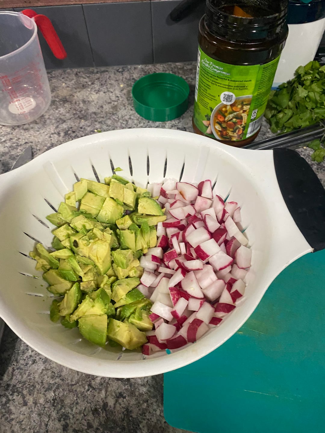 Recipe Ingredients: Roma, Jalapeno, Red Onion, Garlic, Pumpkin Seeds, Sunflower Seeds, Peanuts, Radishes, Cilantro, Avocado, Lime, Vegetable Oil, Sesame Oil, Salt, Chicken Bouillon, Chipotle Powder, Ancho Peppers.