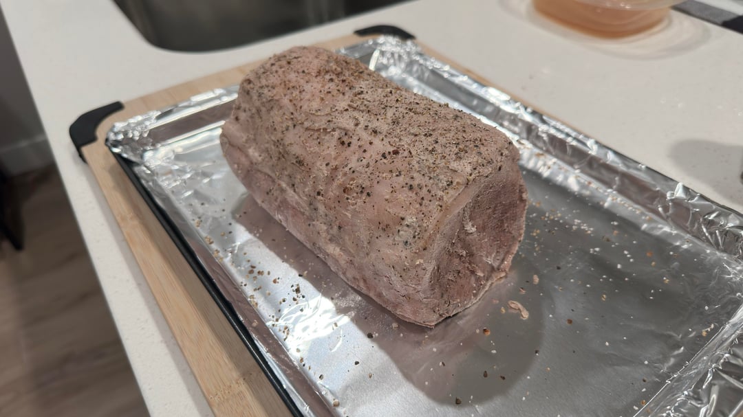 140° 4 Hours. I intended to have a little pink on the inside but this came out as all white. Not very juicy but it was juicy. Not nearly as chewy as I usually have them from the stovetop.