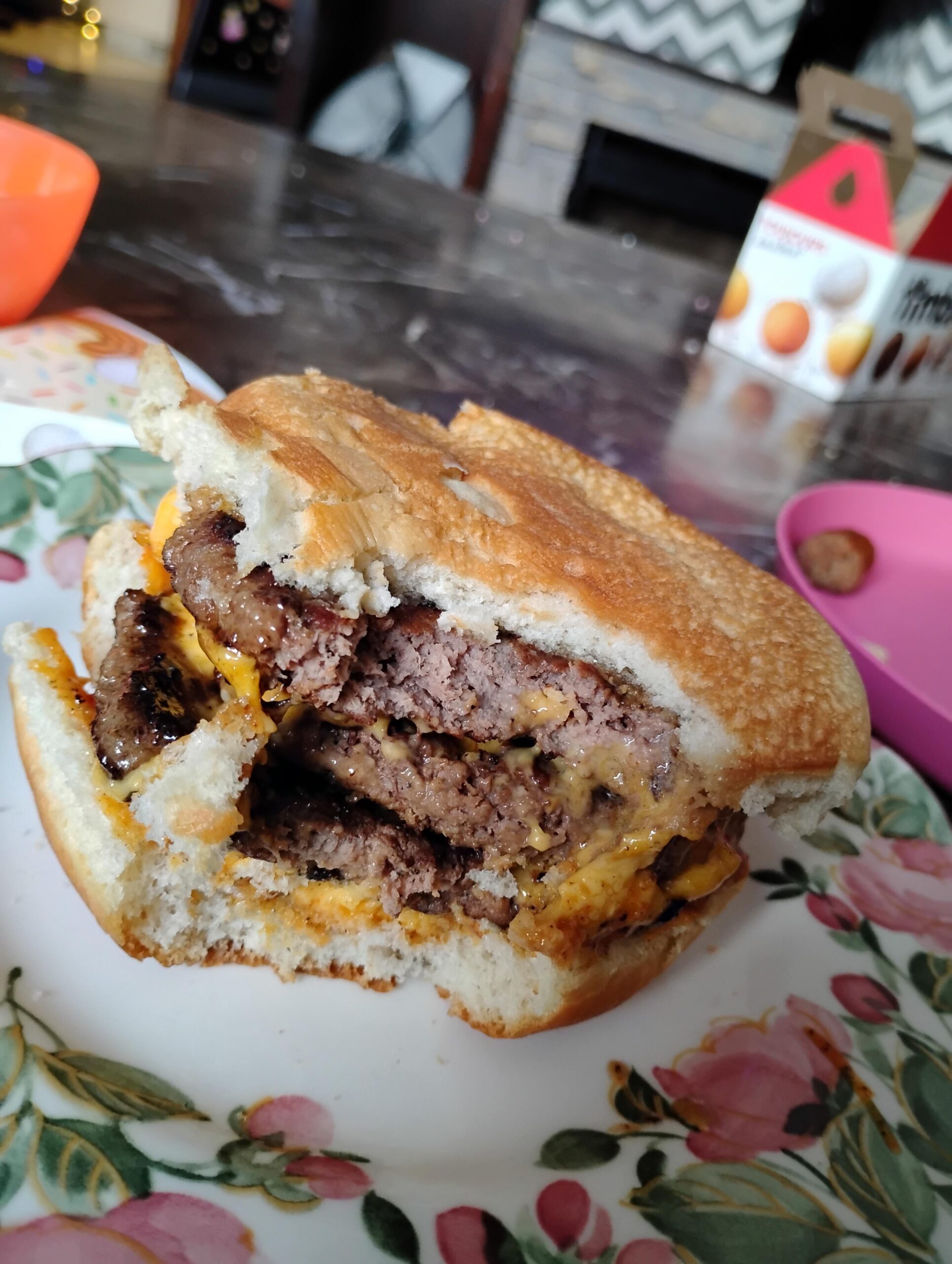Will post process next time, Home made sauce, Processed Cheese, Three patties perfectly tender Grease trapped goodness (Nearly forgot to take a picture)