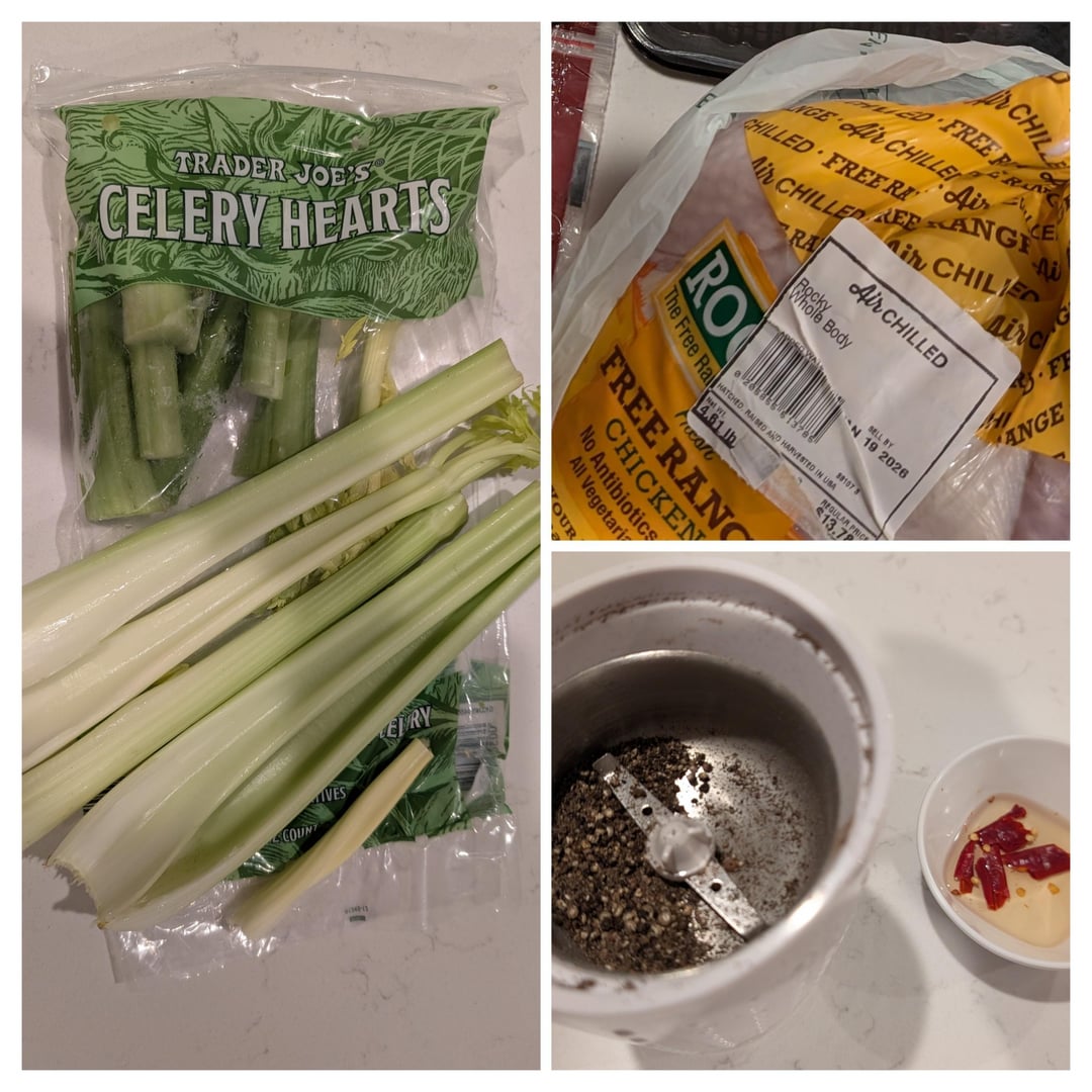 I made 2 servings using 10 oz of chicken breast and thigh ($2.50), 1 bunch of trader joe's celery heart ($1.40), 2 teaspoons of whole black pepper corns/rice/seasonings ~$0.30 = $4.20/2 servings = $2.10/serving. I could get cheaper chicken but I like this brand of free range whole chicken called Rocky which sells for $3/lb and sometimes go on sale for $2/lb.