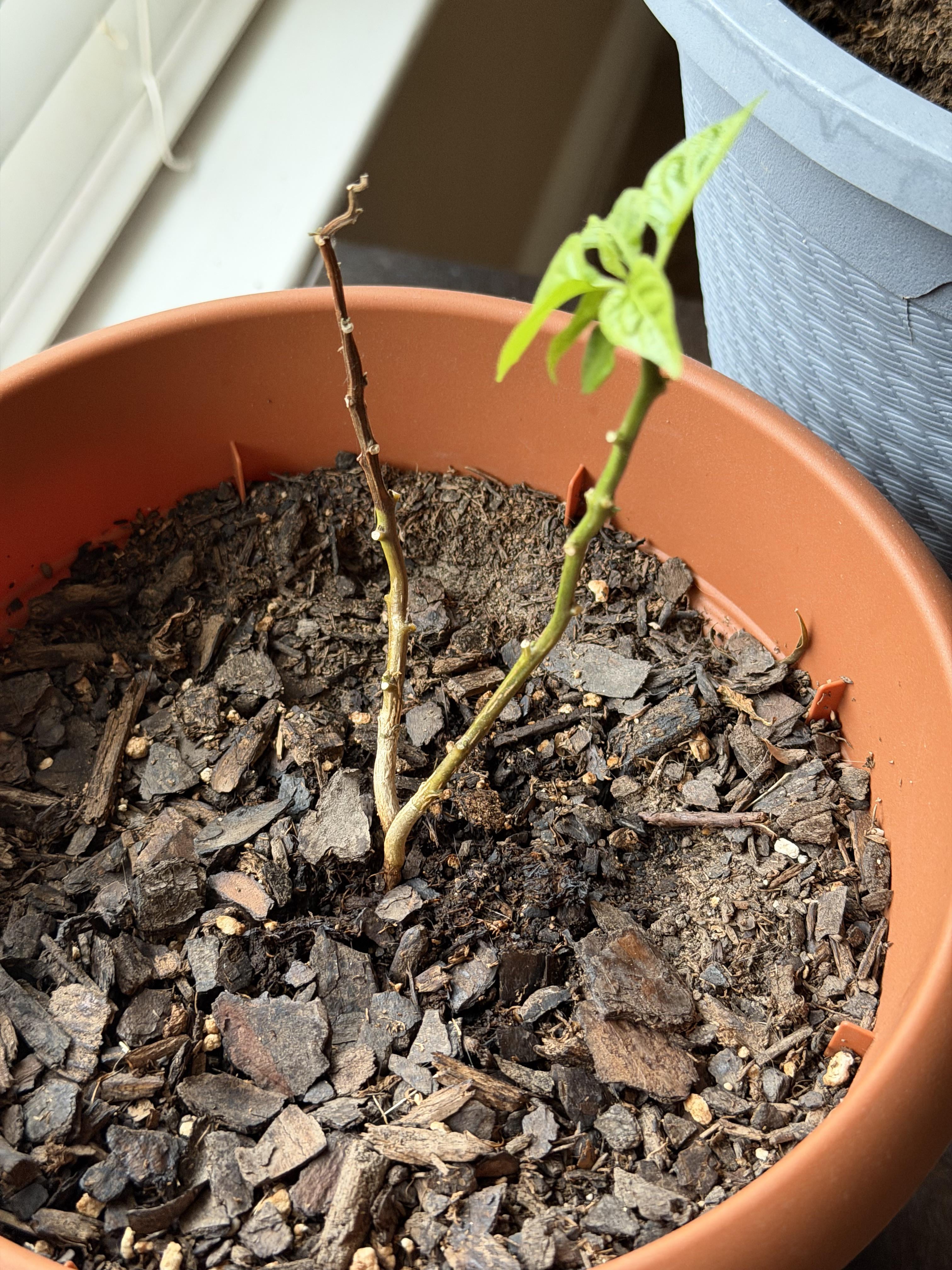 This is my Carolina Reaper. I’m growing it indoors right now because it’s getting below freezing outside, and it seems to be growing pretty well, but I can’t help but wonder if it would do better if I cut that second stem. Is that a smart idea or a terrible one?