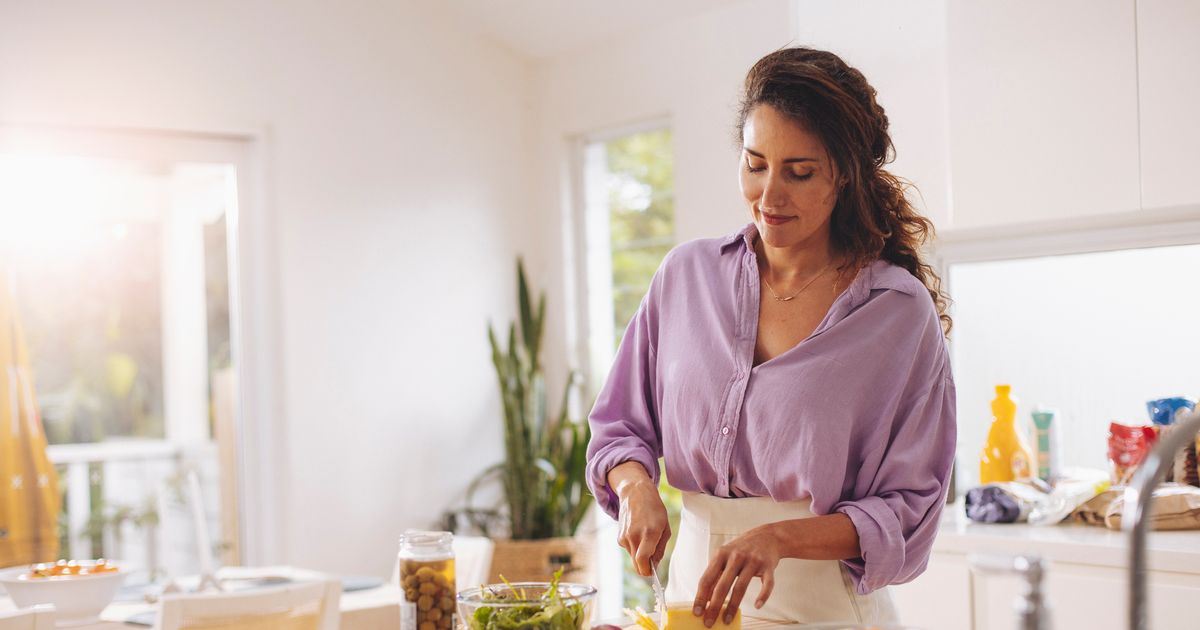 A woman preparing healthy food in the kitchen