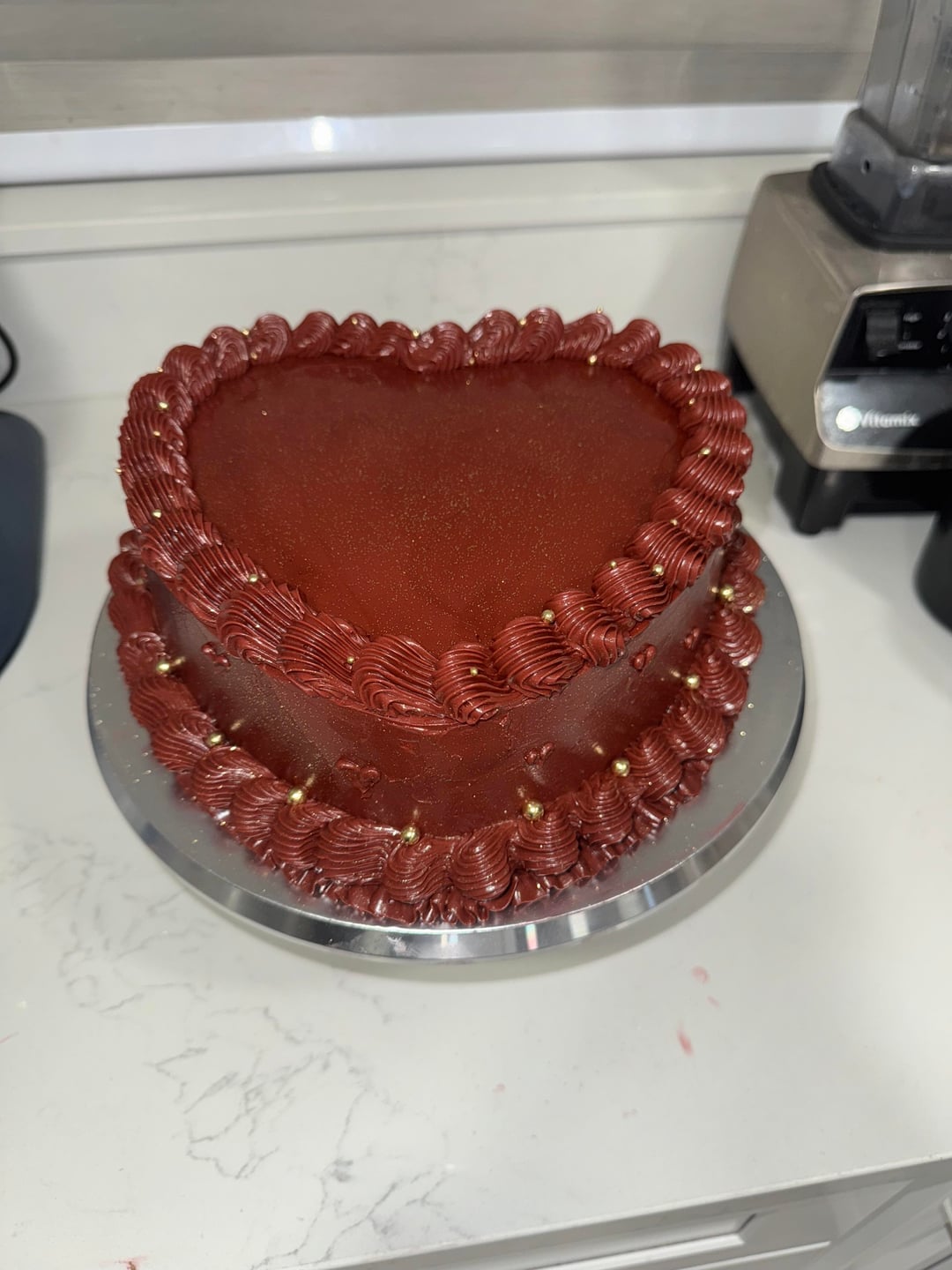 My first heart cake in a deep burgundy red with gold pearl sprinkles and glitter. by Daniels_kitchen 6 Comments kel_kee 3 months ago Beautiful!!! deliberatewellbeing 3 months ago wow that some really nice icing and piping work! NotLucasDavenport 3 months ago Oh, she’s *pretty* pretty artishappiness 3 months ago Ooo this is beautiful!! NewbieMaleStr8isBack 3 months ago A beauty Double_Dimension9948 3 months ago Love this! And the color!