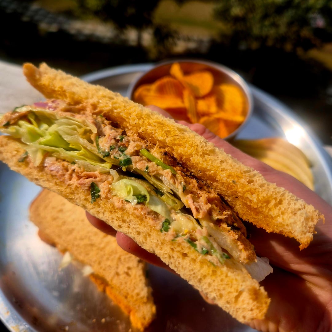 Basically just tuna, mayo, dahi (sort of like plain yoghurt), chopped onion, lime, cilantro and a little chopped achaar with their spice paste (I used sundried rry red chili achaar, but any sort will do, but a little goes a long way, they are quite salty). A little apple for crunch, but it was just because I had some.