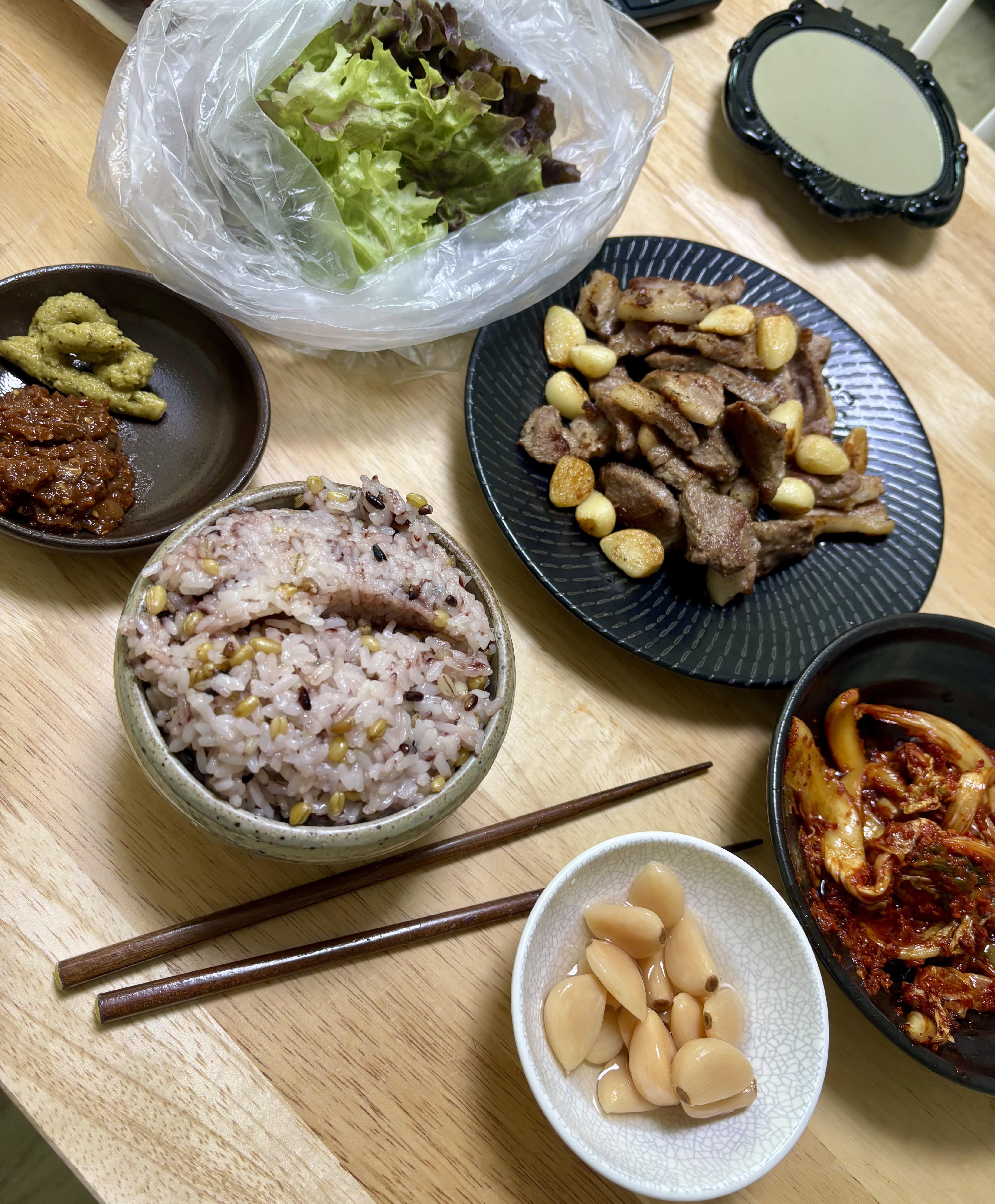 Grilled pork neck with rice, kimchi, and a few simple sidesby woong_03 3 Comments RevolutionaryBar7400 1 week ago Looks fantastic, but I’m afraid some people who’ve never been in Korea might really think of it as a ordinary korean dinner though Icy-Calligrapher3447 1 week ago needs more garlic 🙂 Proseph_CR 1 week ago Needs soup.Rice soup kimchi banchan