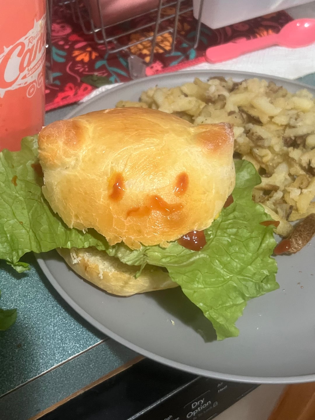 Yesterday for dinner I made homemade hamburger buns in the shape of a cat and they turned out pretty well and tasted pretty yummy 🙂by Outrageous-Table4917 2 Comments Fuzzy_Welcome8348 1 week ago Looks tasty! 😋 Creepy-Egg-8874 1 week ago it looks like a turtles head thats eating leaves