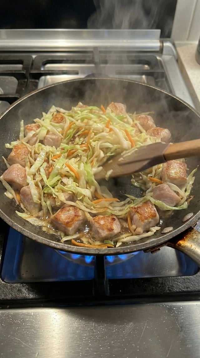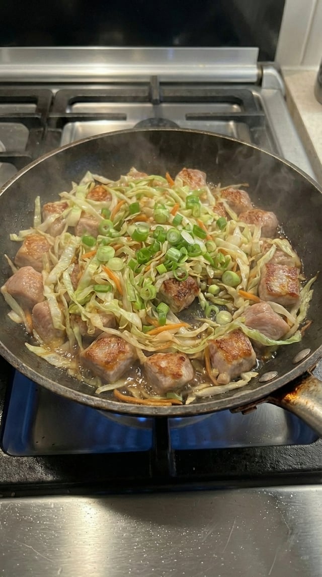 4. Wilt: Stir frequently for 3–4 minutes. The cabbage will soften and shrink slightly but remain crunchy and massive in volume.