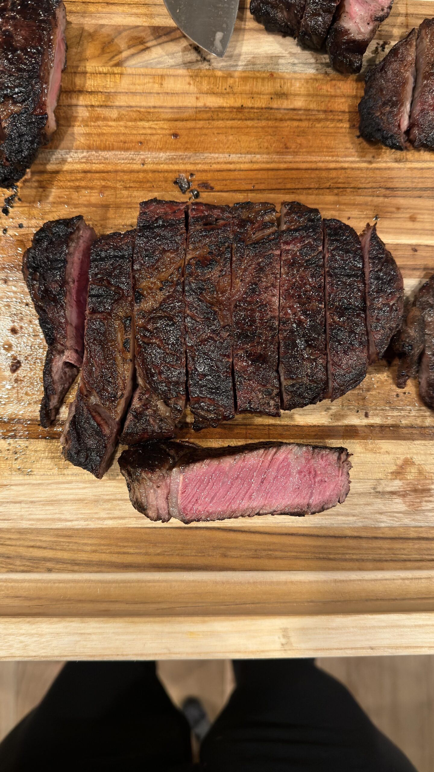 Ribeye from a choice Costco rib roast. $50 off after the holidays brought the per pound to $11.50. Grilled over Jealous Devil lump.
