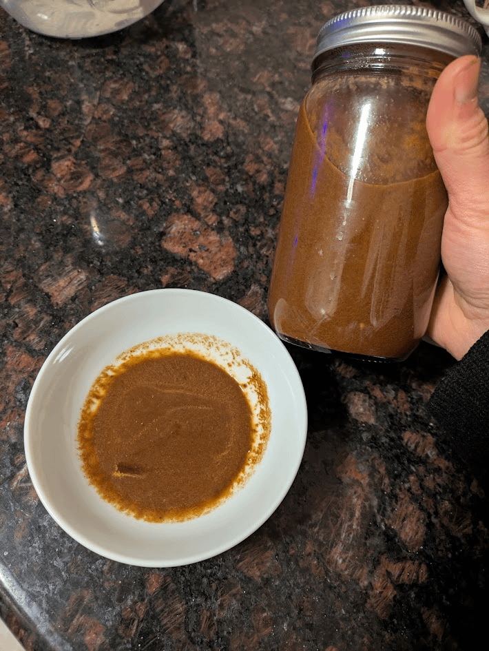 last time i was in seattle, i grabbed some fancy peppers at my fav spice store. last night, i toasted them up with some garlic cloves and cocoa powder, boiled/simmered with some orange zest and tiny bit of vanilla, then moved the rinds and blended the rest with the juice of two oranges, some apple cider vinegar and a tiny bit of molasses to add a little sweet and zest. emulsified a little sesame oil and neutral vegetable oil since i like it a little creamy. came out delicious and very seasonally appropriate.