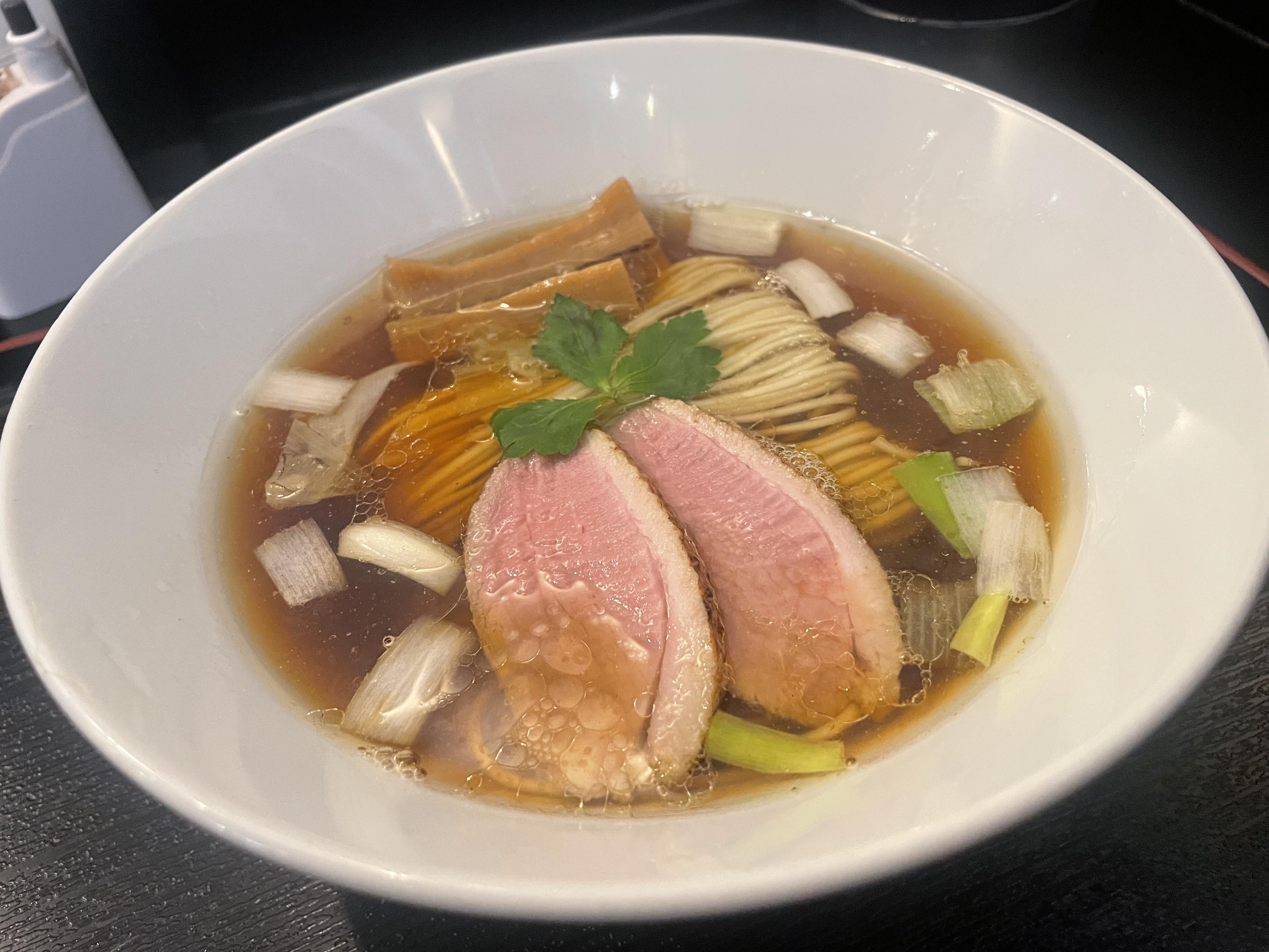 A soy sauce ramen made with duck-based broth. The chashu is also duck meat. The flavor is very mellow, and the noodle presentation is beautiful.