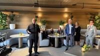Michael Mina speaks during a preview event at Acqua Bistecca as Mark Wilson, president and CEO of London Bay Homes, and members of the development team look on at the Estero Bay waterfront restaurant.