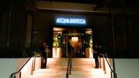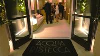 The interior entryway of Acqua Bistecca is shown during evening hours at the waterfront Italian restaurant.