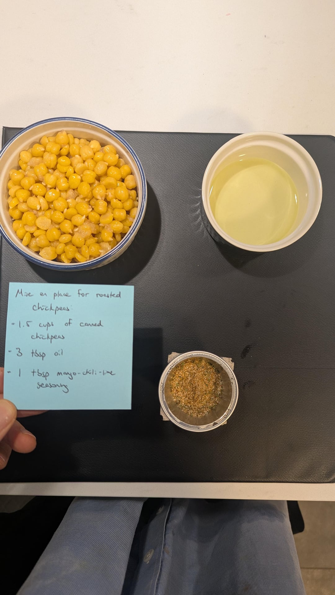 All you need is chickpeas, 2 tbsp of oil per cup of chickpeas, and seasoning. first bake or air fry the chickpeas on their own so that they dehydrate before the spice goes in. This prevents the spice from burning.