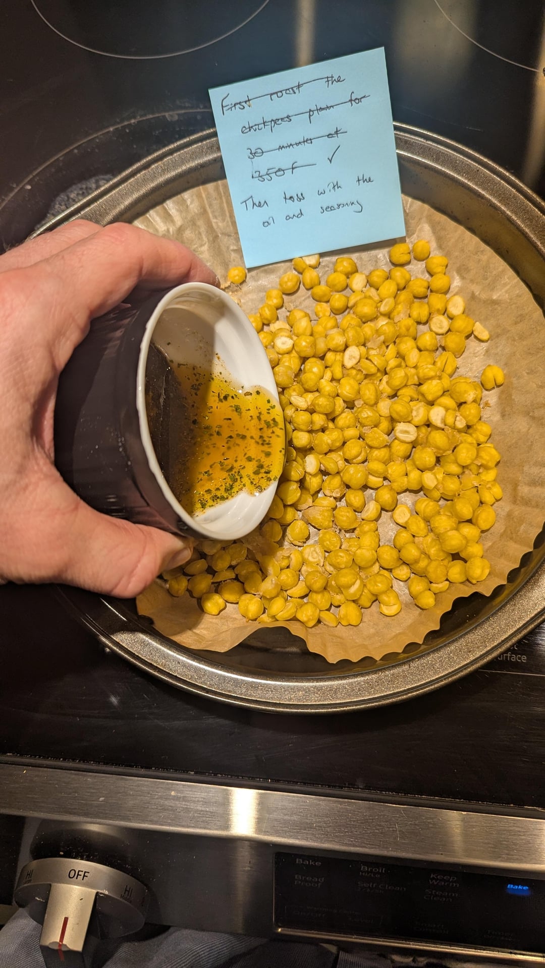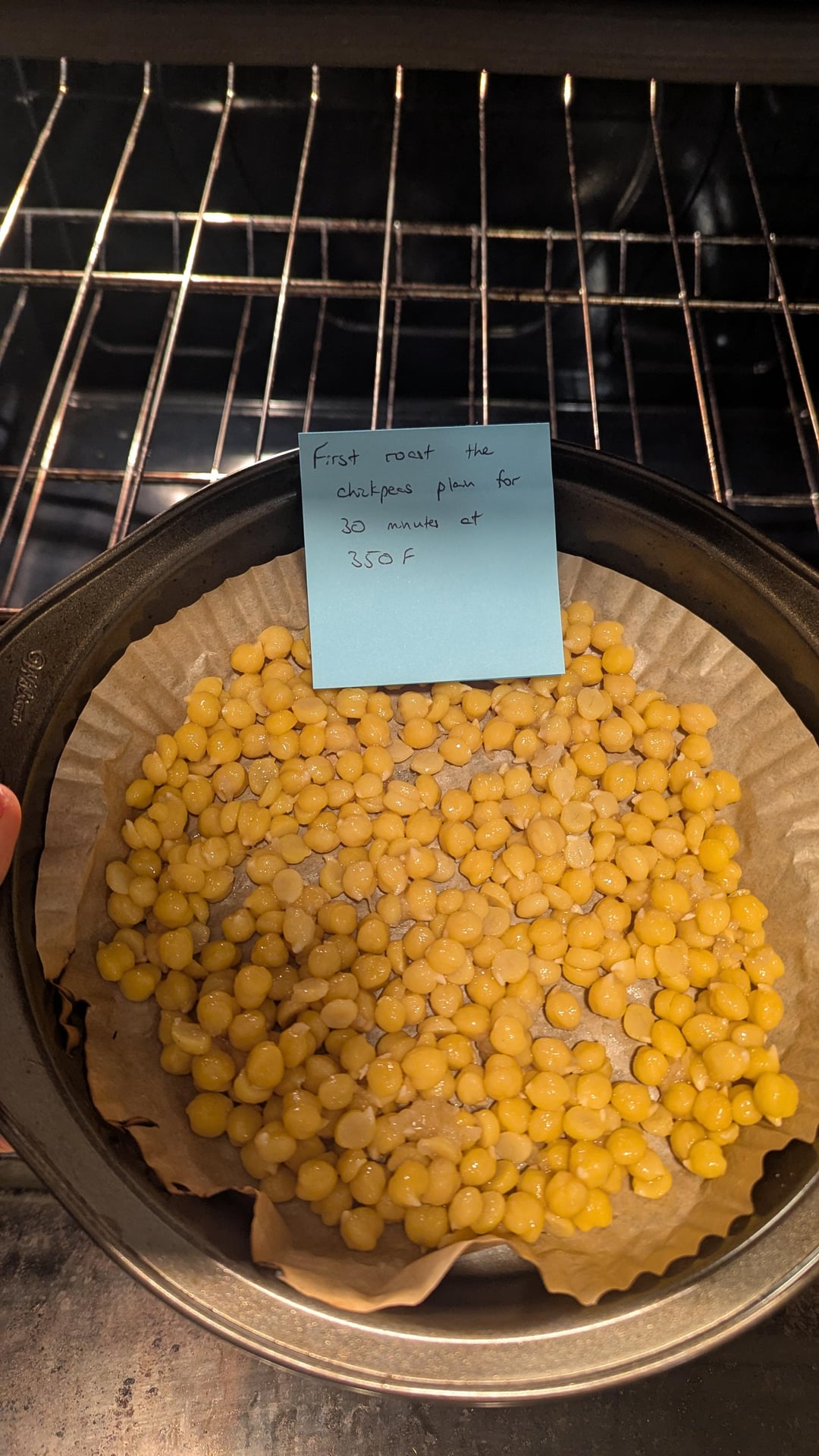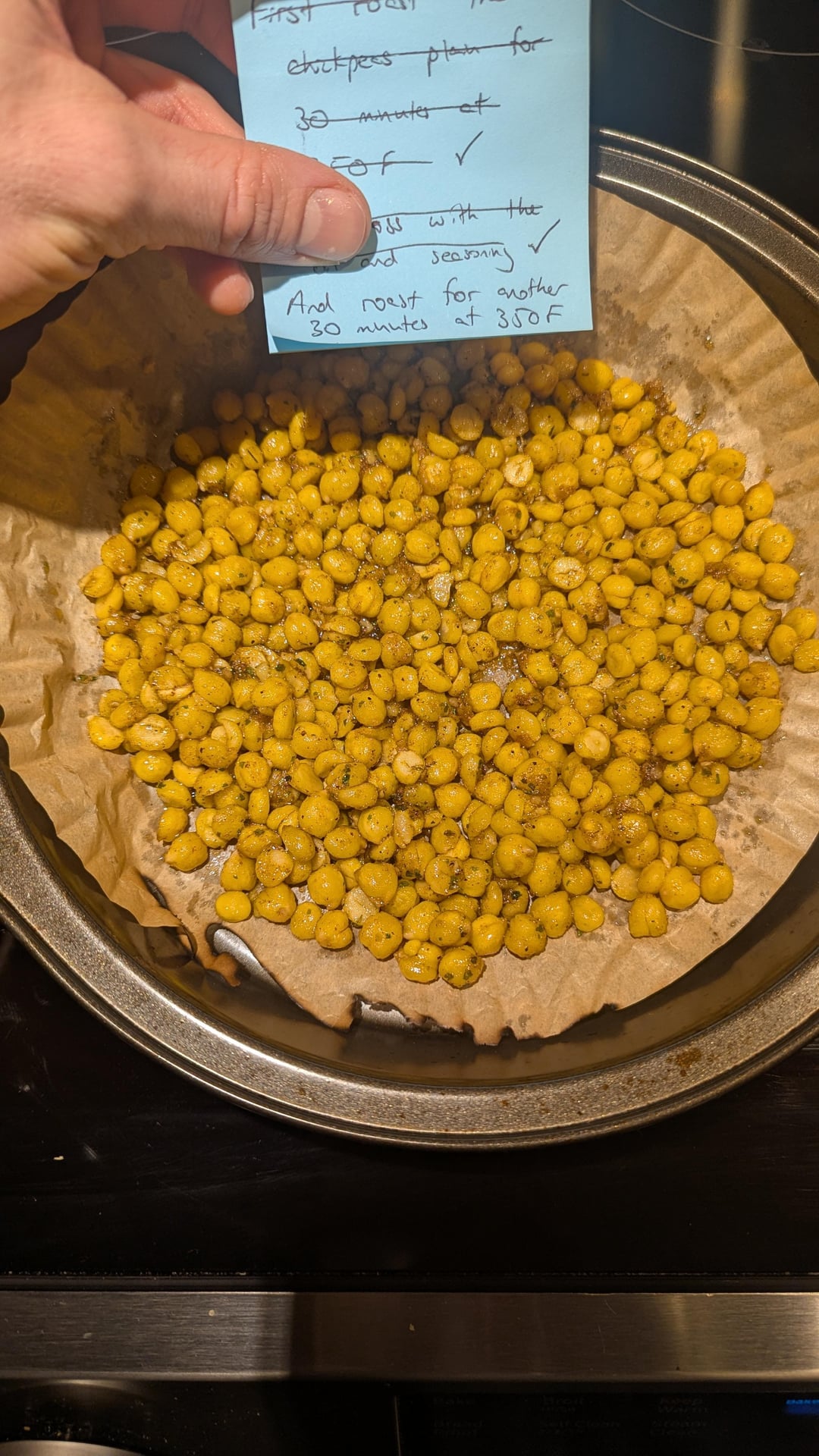 So pat the chickpeas super dry with a kitchen towel before baking they get a better crispy texture