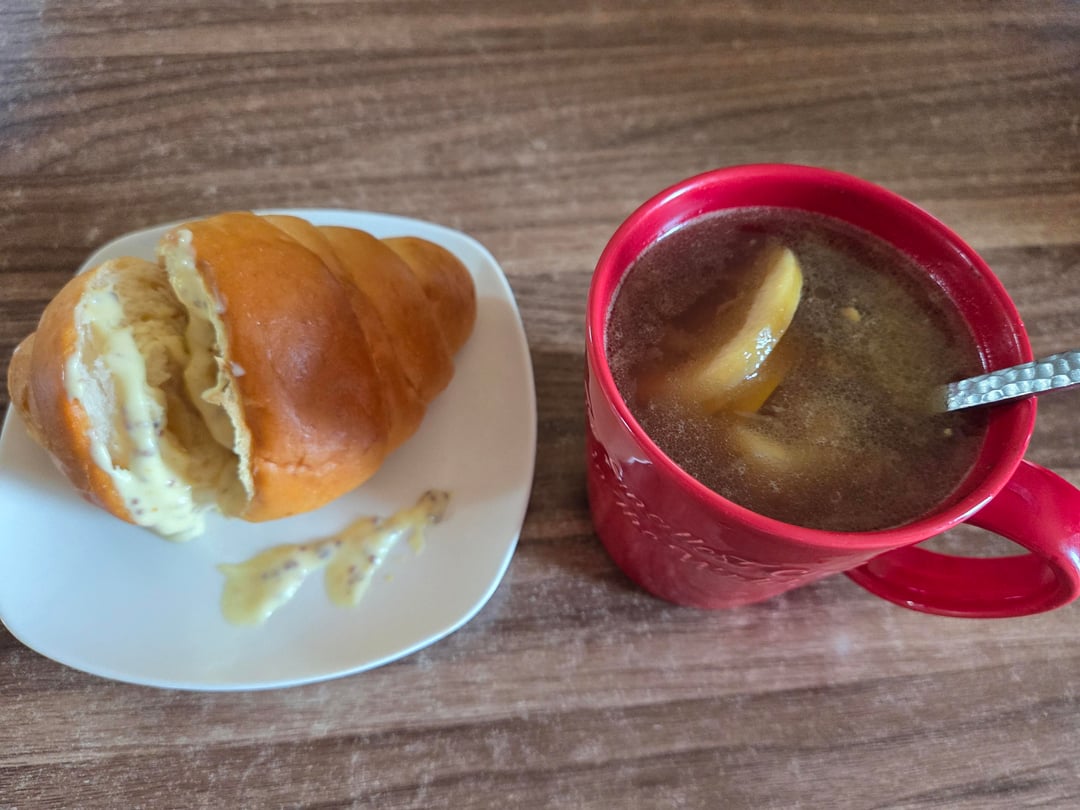 I had a croissant with warm lemon tea with butter in the morning. It was delicious with some sandwich sauce too~~ πby Ambitious_Storage666 4 Comments Fuzzy_Welcome8348 3 months ago Looks pretty good e-card 3 months ago That thing has only the shape of a croissant. Bubbly57 3 months ago This looks absolutely delicious π holderofthebees 3 months ago Sounds great, whereβs the croissant?