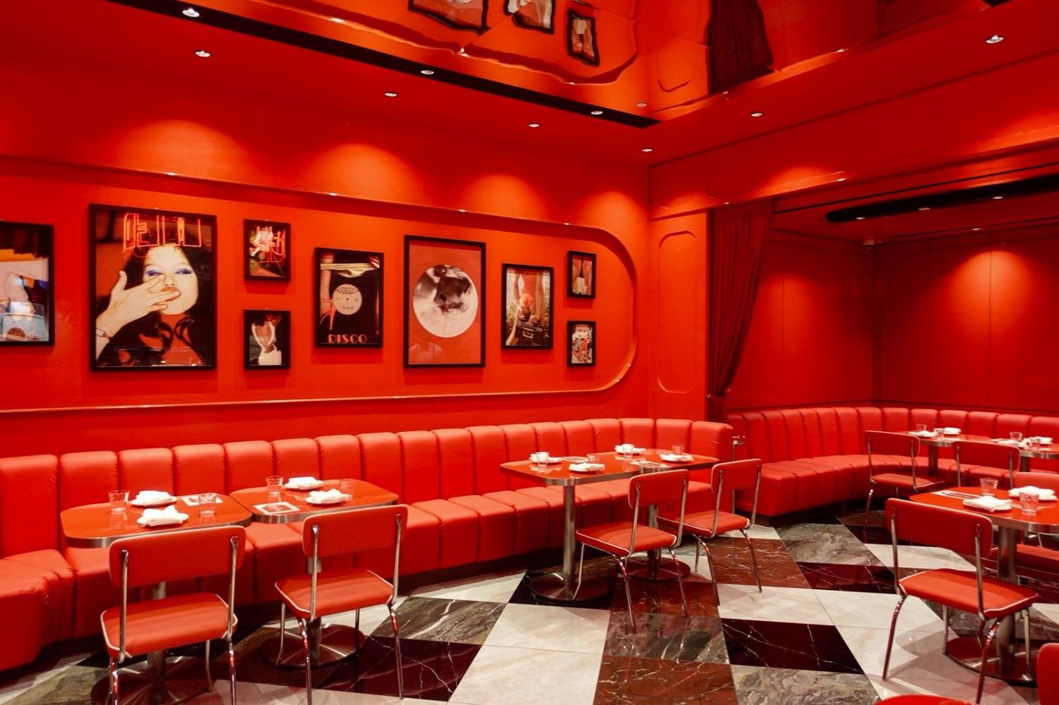Paying homage to Rome’s vintage luxury era, the restaurant’s bold crimson walls, dazzling LED lights, and cheeky portraits transport diners back in time to a glamorous Roman supper club. With both indoor and outdoor dining accommodating up to 76 people, it provides a vibrant setting for various occasions.