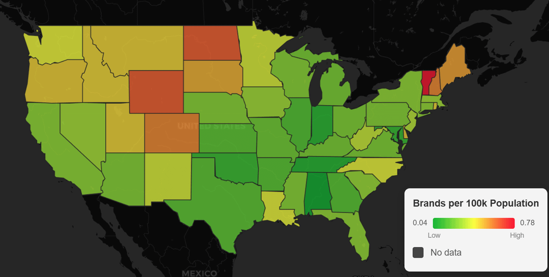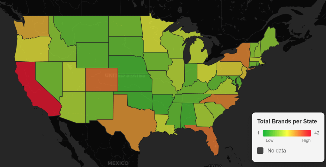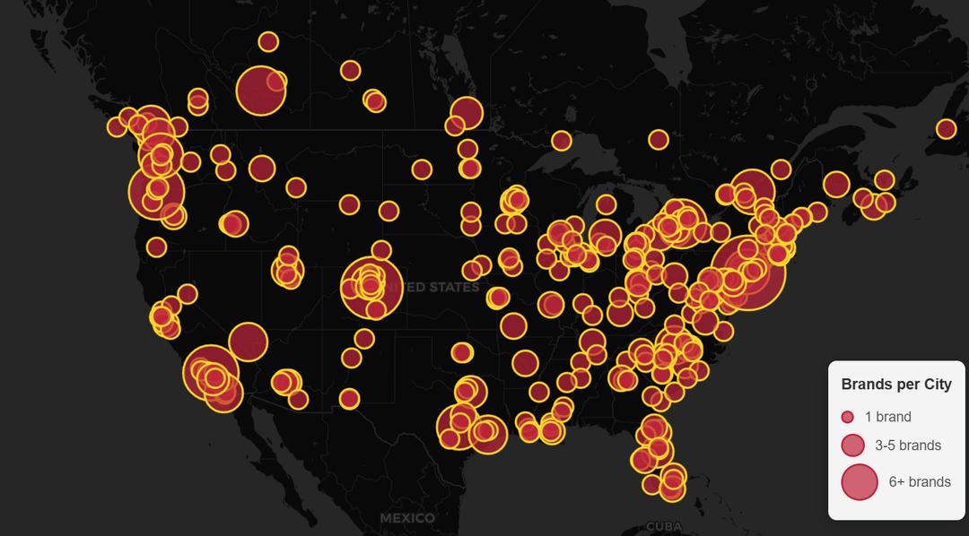 See the full map here to explore details and search the database. There's a link to submit brands, so please submit any brands we may have missed.
