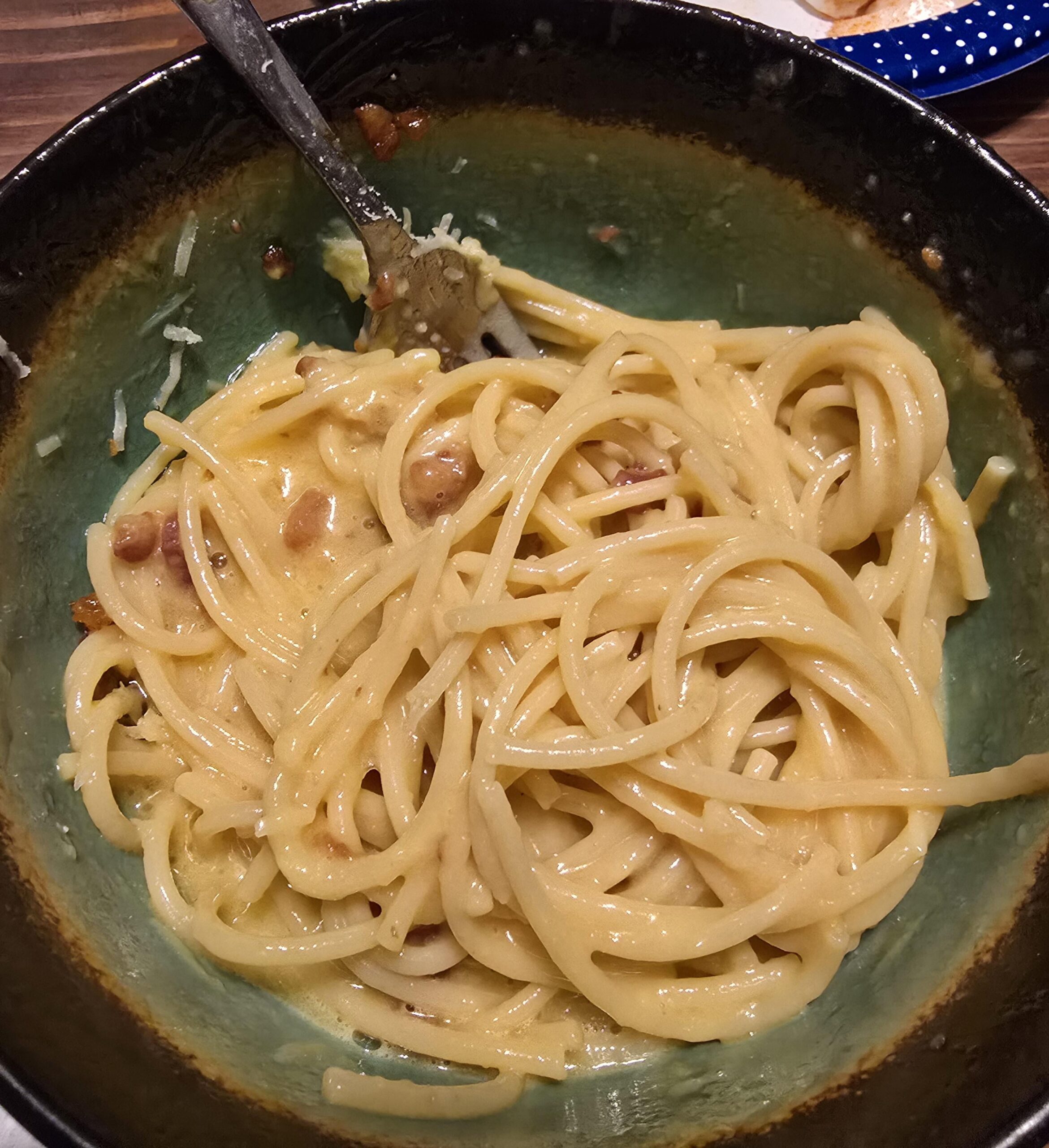 it's a running joke that I always forget some kind of ingredient, and yesterday was no exception. I had toasted up some peppercorns, and ground them up with my pestle and mortar to top the carbonara, and of course forgot to put it on before serving 🫠