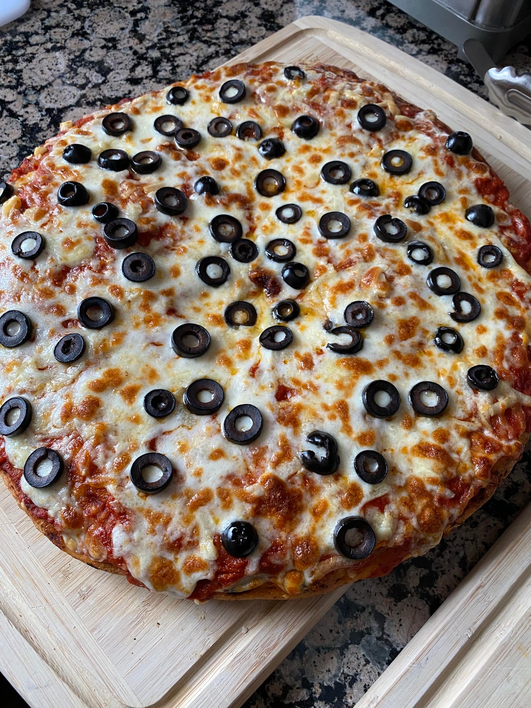 Might sound silly but legit, olives are my favorite on pizza. Just the cheese and olives create such a great taste! Love it!