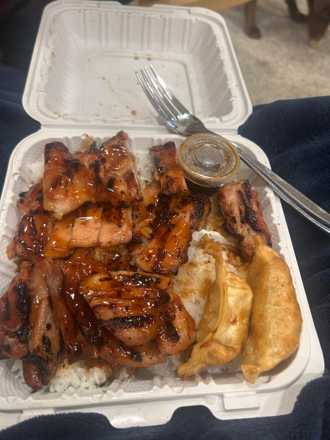 teriyaki takeout + gyoza + riceby raccooneater6000 2 Comments raccooneater6000 7 days ago the body got deleted ? idk im not good at redditjust give me calories for the whole thing, chicken thigh and there’s rice everywhere underneath everythingthanks! da_realest_az 7 days ago Call it a cool 1200