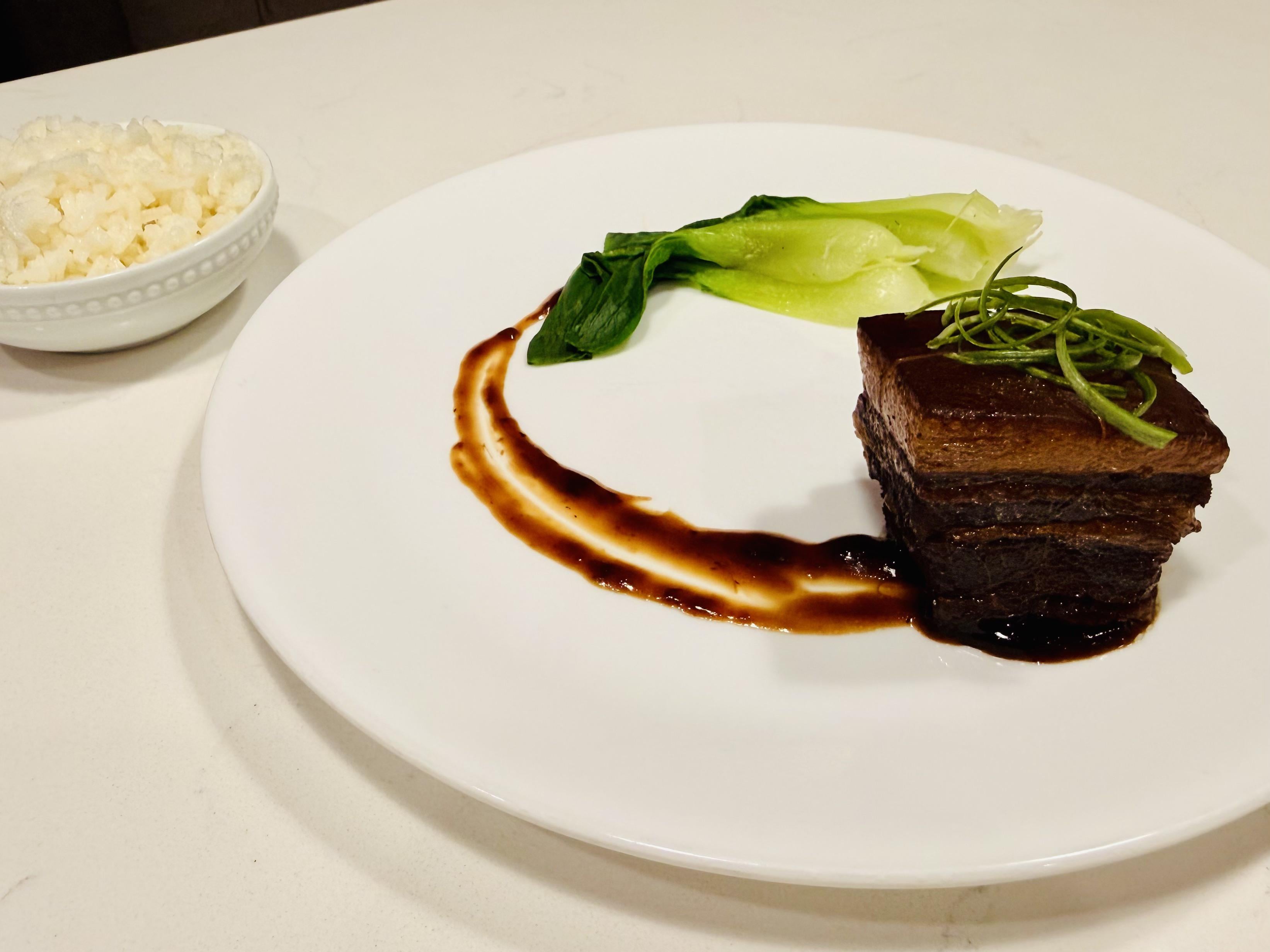Looks absolutely delish, would destroy this plate, and lick it after. I do wish the streak was a little cleaner, I can’t help but notice it looks a bit like a dookie streak. I get your direction with the bok choy, completing the ring, but it also looks a little lonely over there.