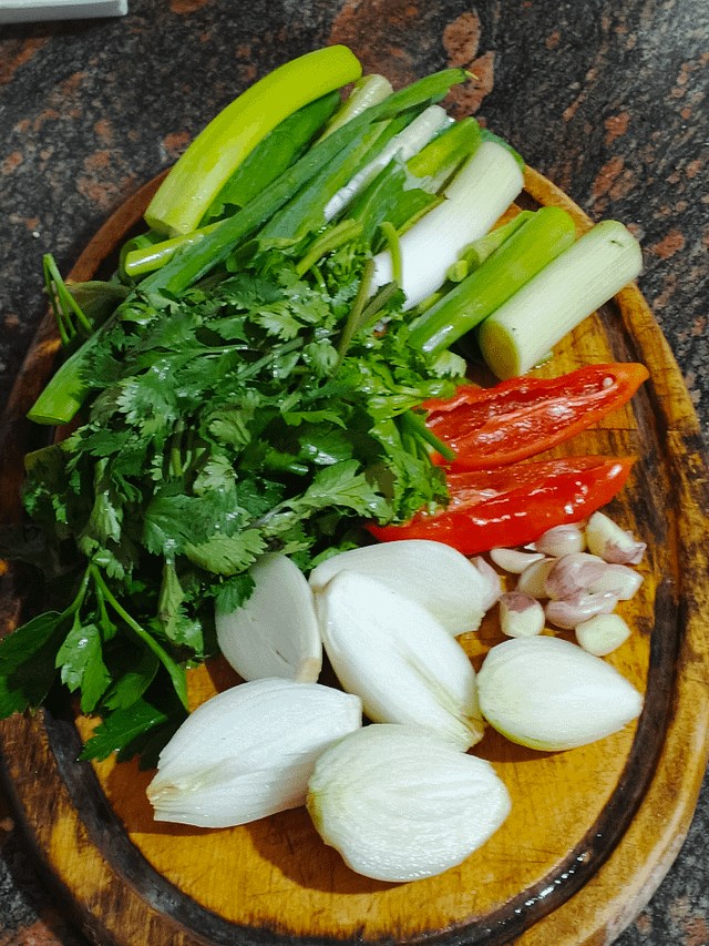 After blending all the ingredients into a paste, coat the meat with the mixture and wrap it.