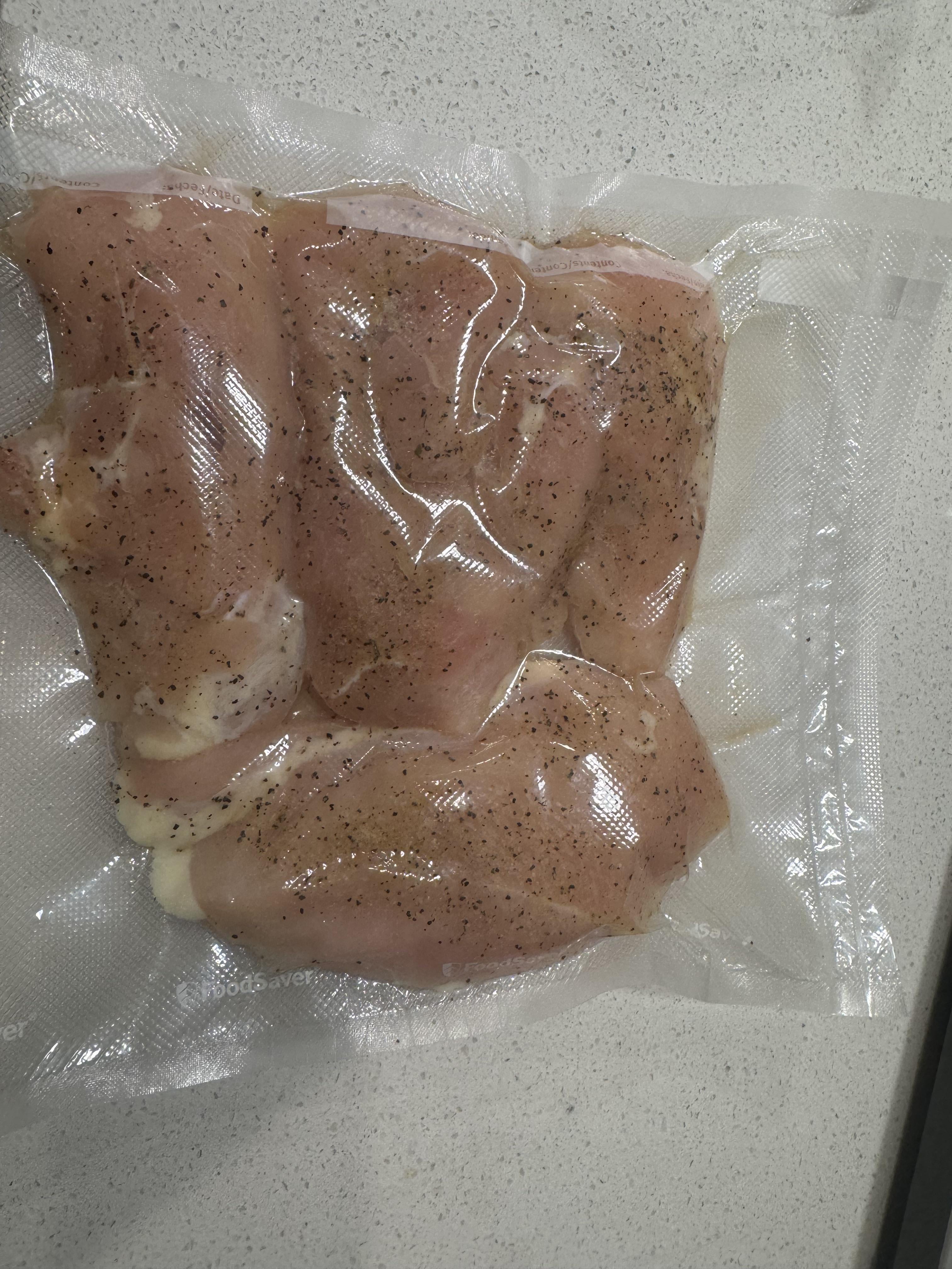 I was running out of bag so decided to add all 4 chicken breast to the same one. I plan on doing 148 for 3-4 hours. Theres no space between them so its like cooking one giant breast… right?