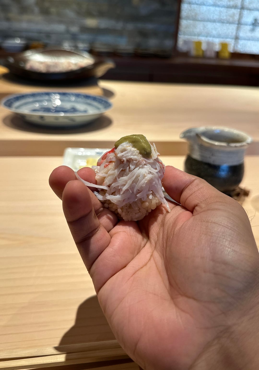 First pic is the crab, second is the actual nigiri topped with kanimiso. I love Fukuoka man, probably the second best strongest sushi region outside of Tokyo although I freely admit their preferences really align with my personal tastes.