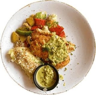 Pic 5: Jalapeño Orange chicken: Grileld chicken fillet with a spicy orange infused jalapeño sauce with mashed potatoes, and sauted vegetables.