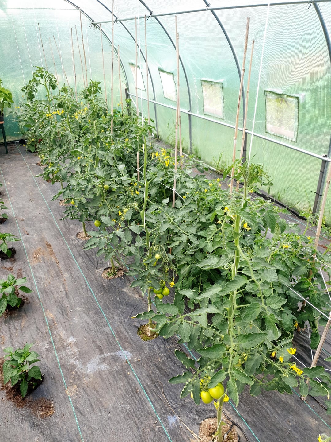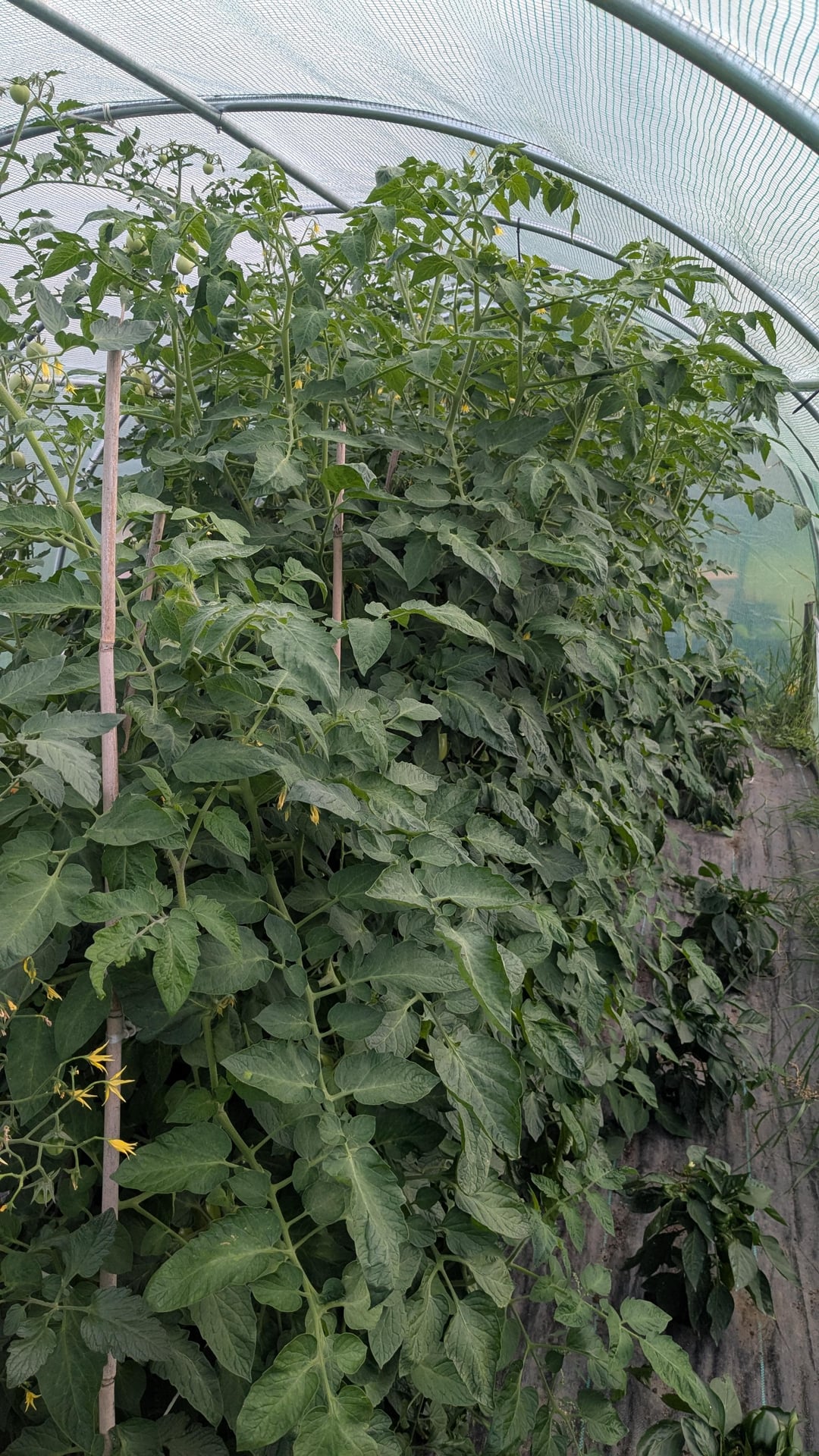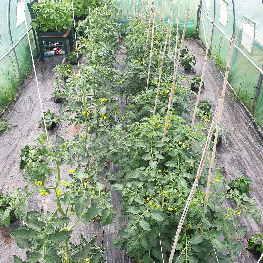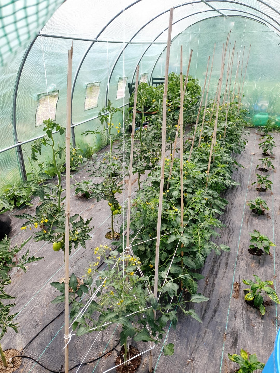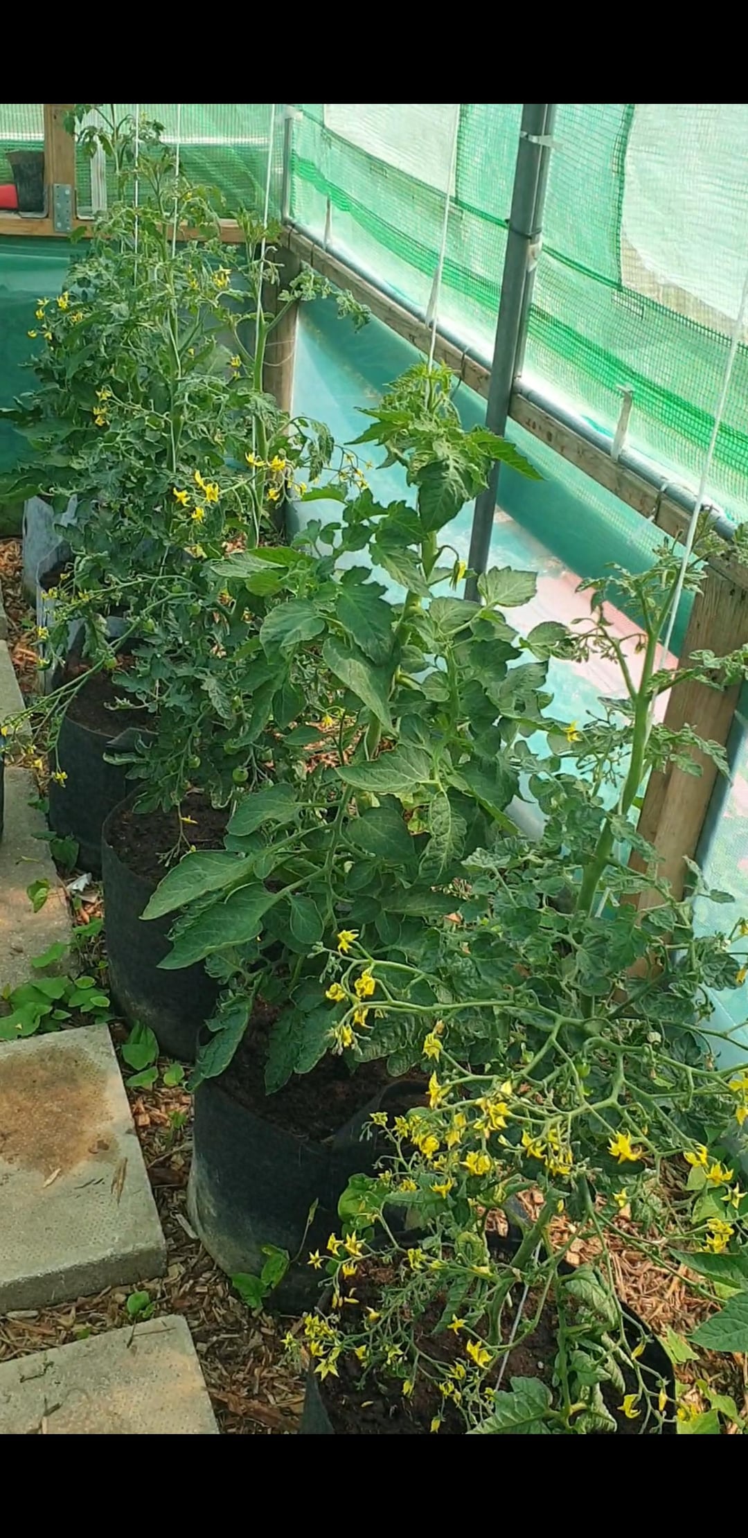 They look great!!! One thing I would suggest is to ditch that green foil and get some proper PE 15 microns tunnel foil plus a shading net for hot days. I had one of those too but they block too much sunlight. The plants will grow but there will be no proper taste in the tomatoes. You’ll also need a vent at the top of the wall on the opposite side.