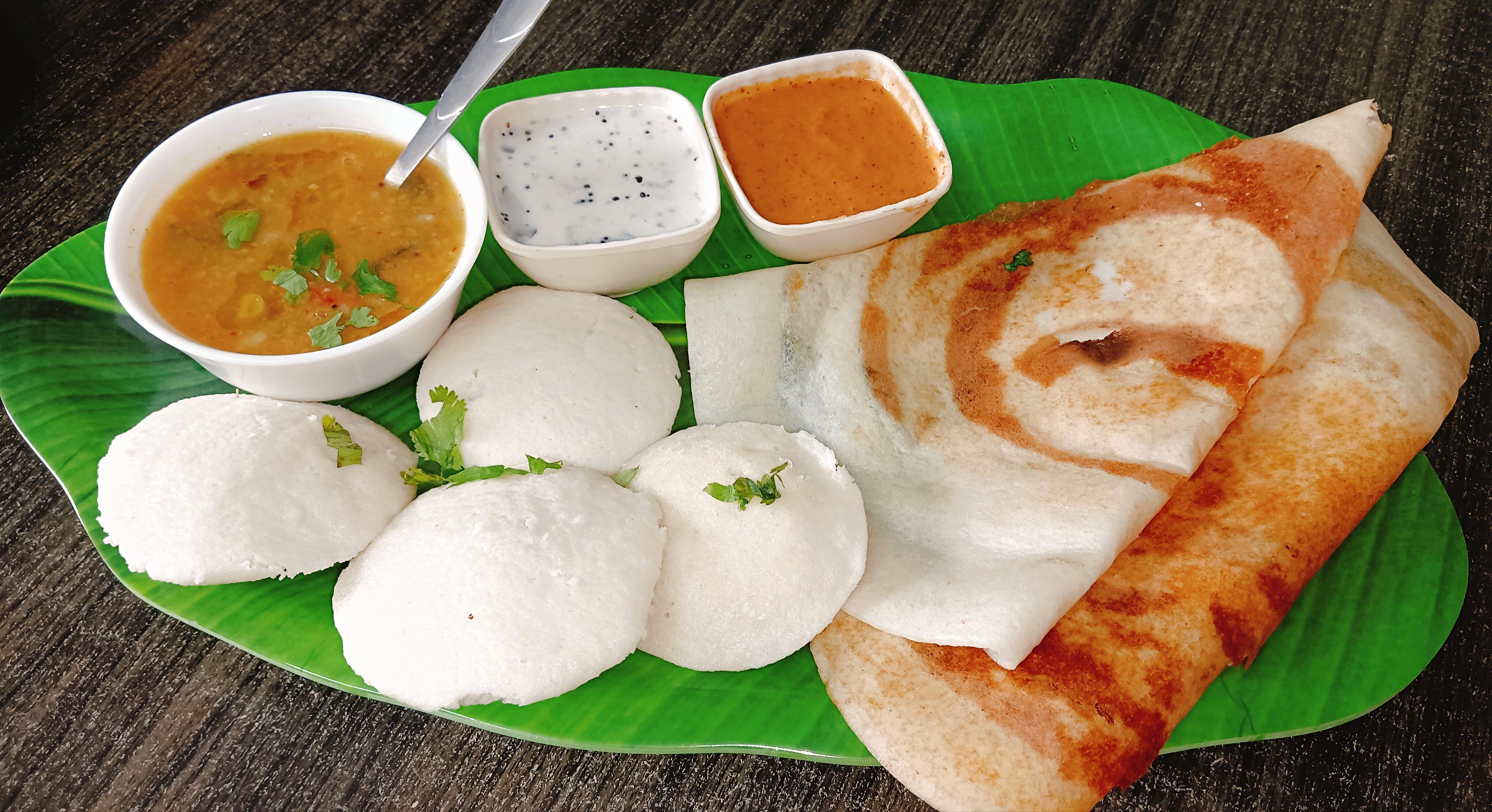✨ Enjoy a complete South Indian style Idli, Masala Dosa, Sambar & Coconut Chutney at home.