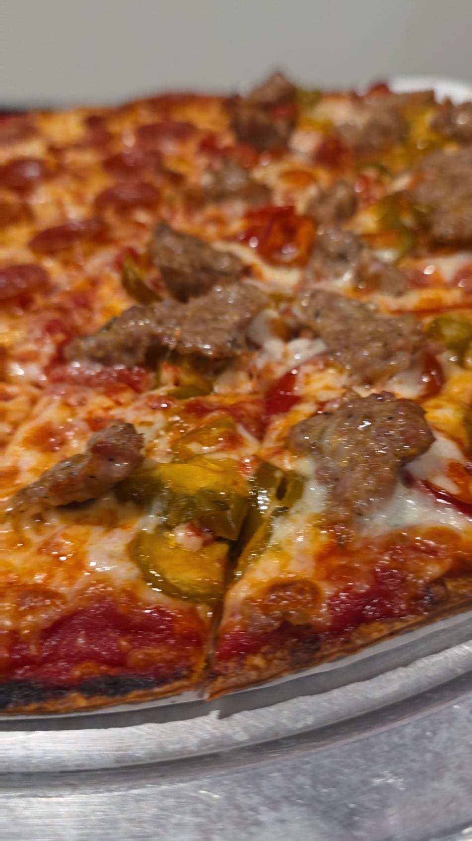 This is a half pepperoni and half sausage and hot cherry peppers. Took a lil giardiniera break.