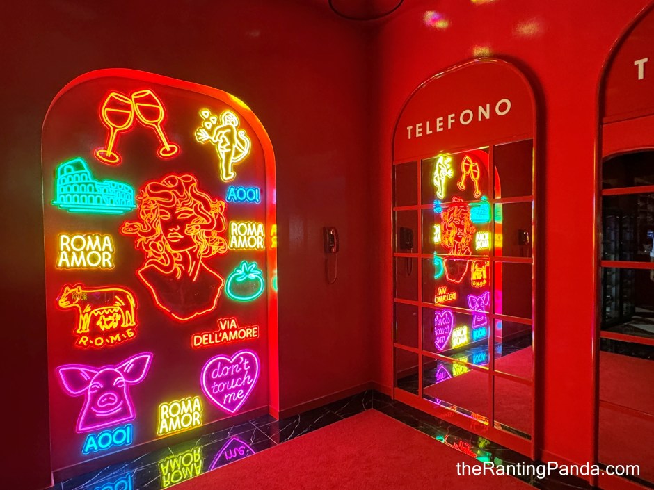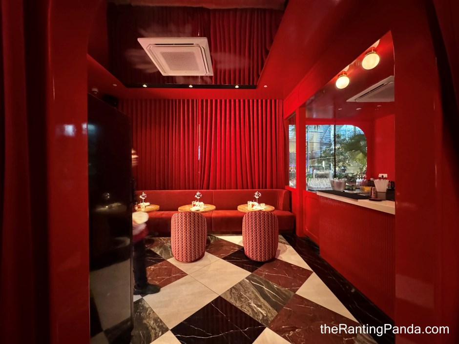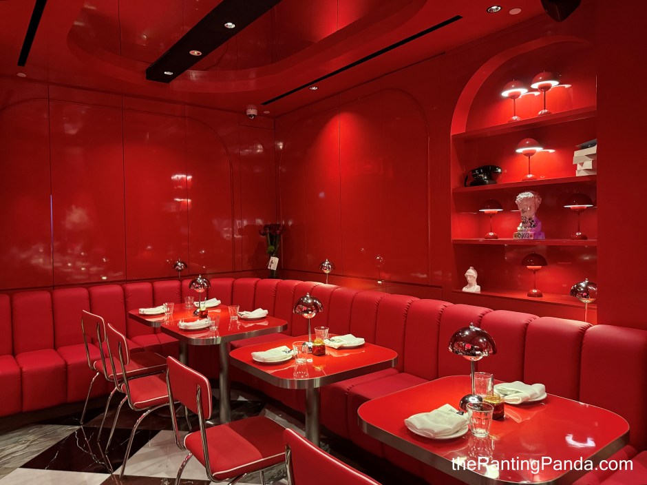 The first thing which struck me was the loud red hue theme of Medusa where its interior is a play on Rome’s 1960s vintage luxury era – crimson walls, LED lights and cheeky portraits. The concept is also Singapore’s first-ever Osteria Romana with a focus on Roman cuisine.