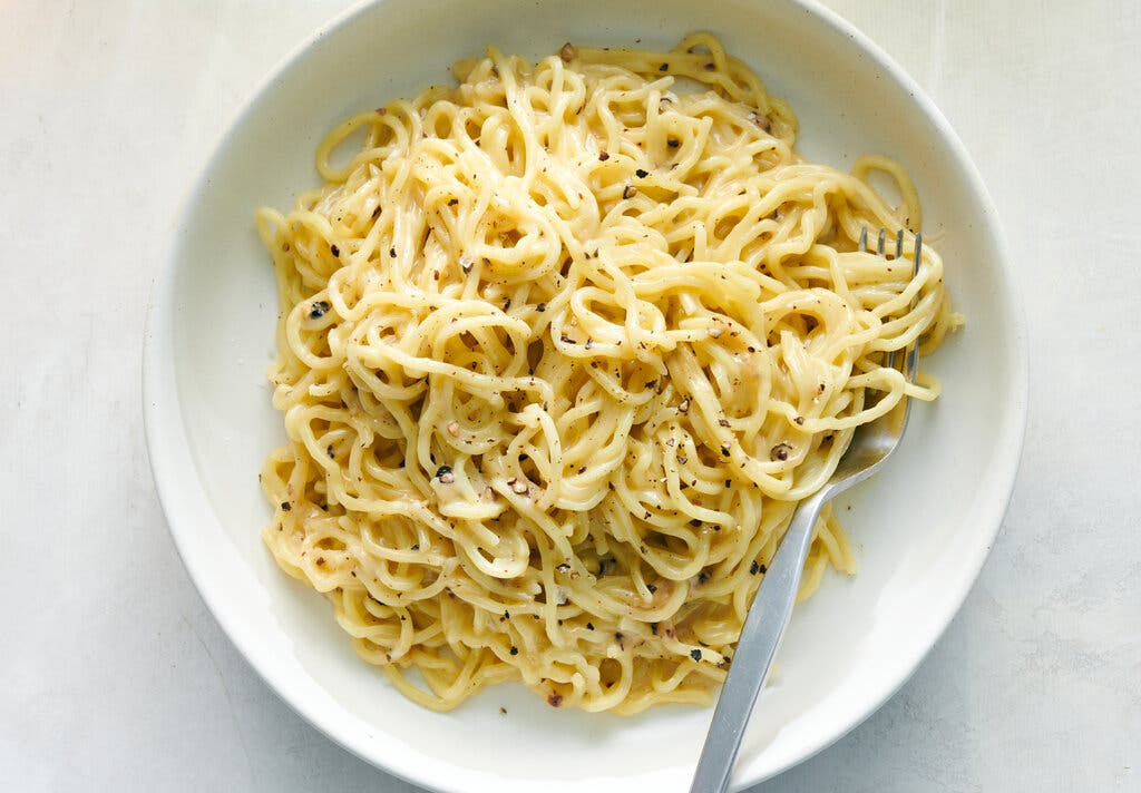 Ramen noodles bring a bouncy twist to this classic Roman pasta dish. You’ll want the black pepper to be very coarse so that it can infuse the butter and achieve that fruity heat without burning.