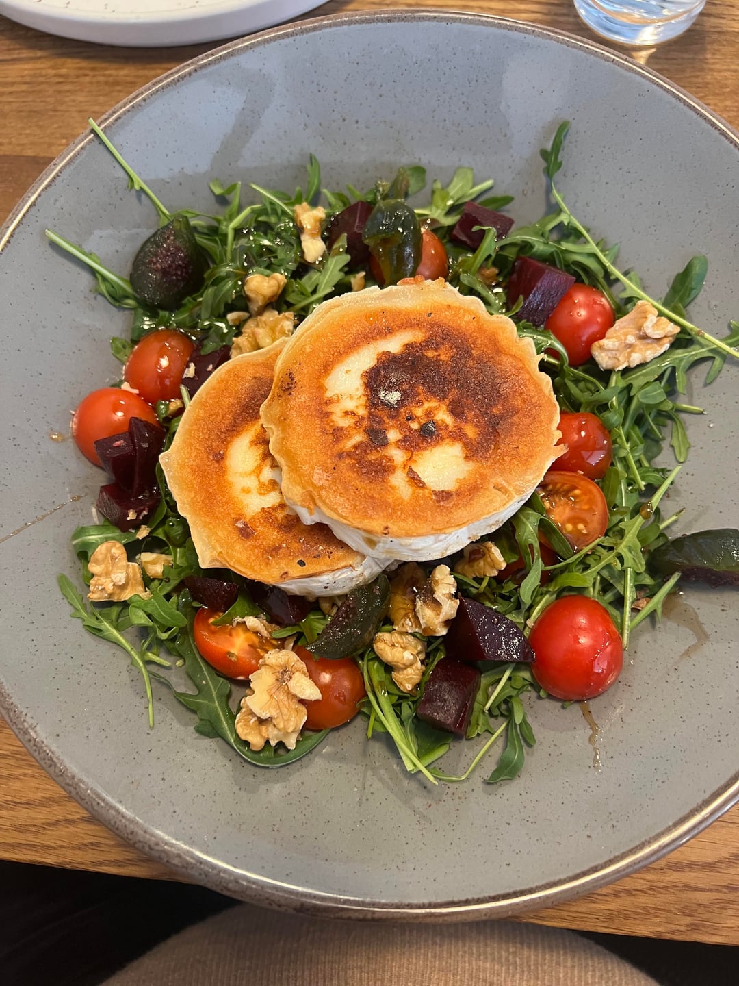 Ate at the restaurant today and literally can’t tell, salad has figs in it and walnuts, dressing was honey? Cake was hazelnut and chocolate but creamy inside not cake-y