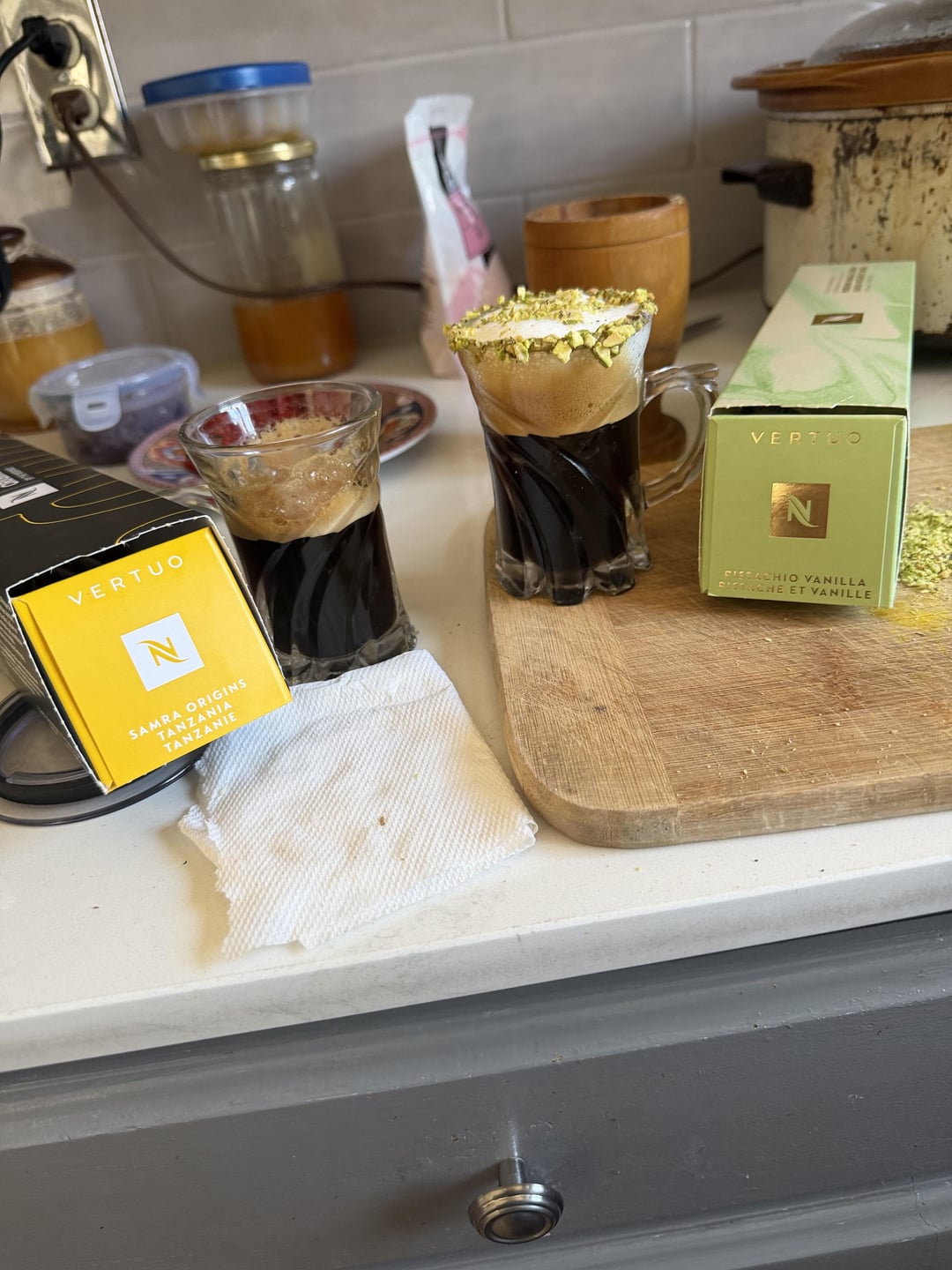 Those nuts are kind of giving me the ick but I need these caps. My fav drink from Starbucks is the pistachio latte and I’ve been making an amaretto latte with blonde espresso instead because I couldn’t find pistachio syrup