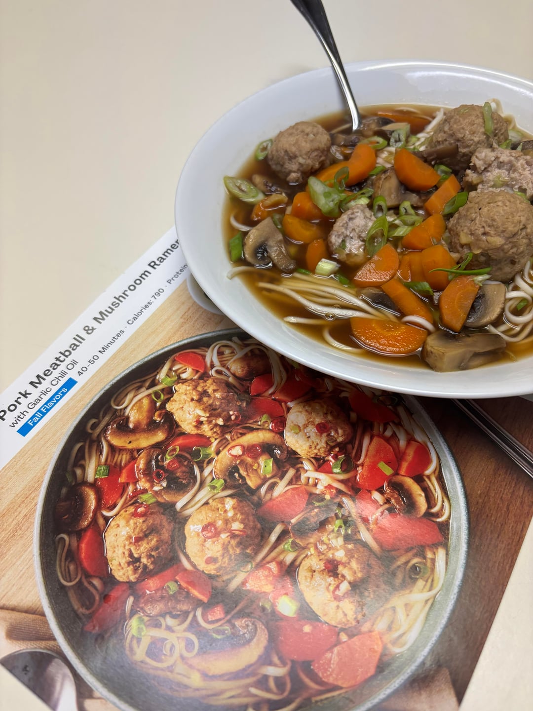 Pork Meatball Mushroom Soup. I never made pork meat balls or burgers until I used HelloFresh. The broth was savory and a perfect seasonal soup.