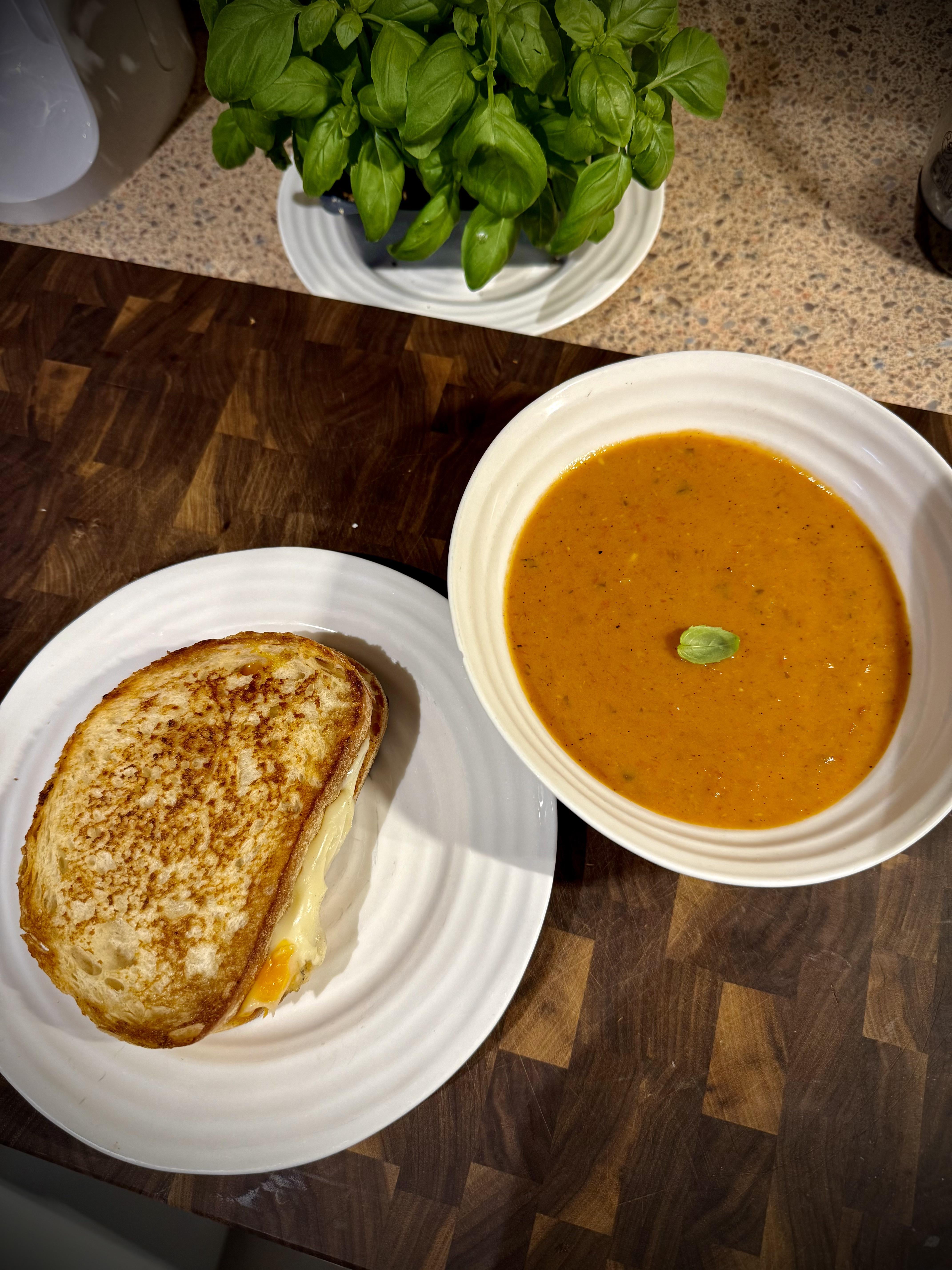Coldest place on earth today, Ontario. Calls for homemade tomato soup & sourdough three cheese griller.