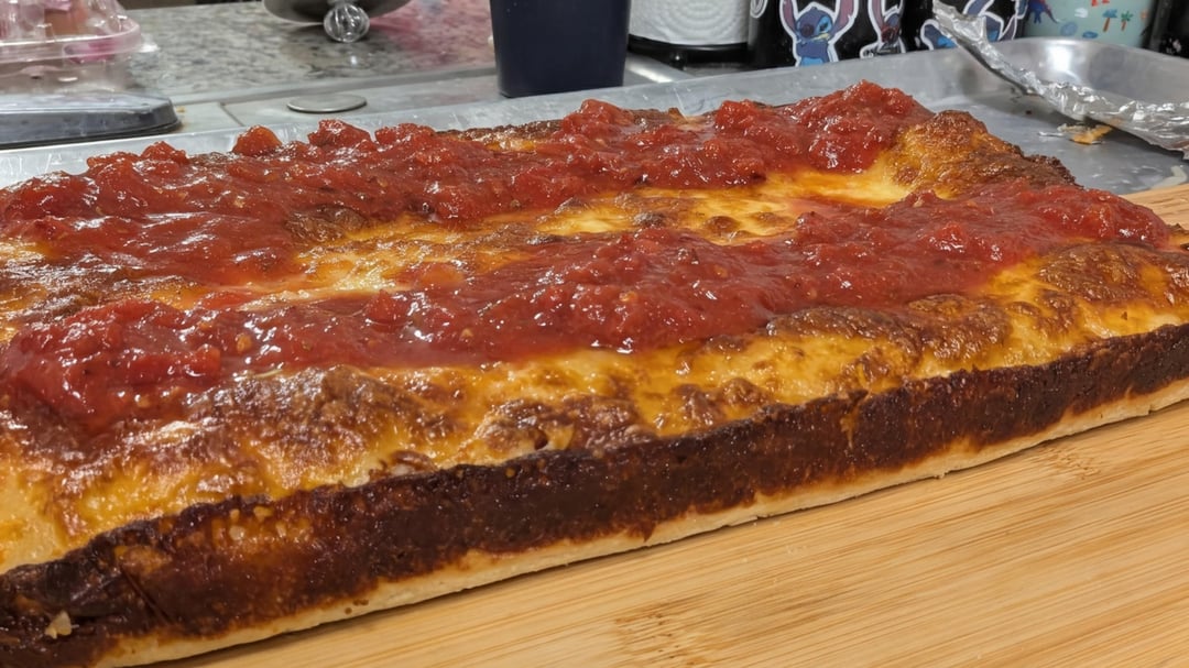 Made two to experiment with cooking times. You can see that one is darker than the other. Feedback welcome.by emptykeg6988 14 Comments Informal_Bee_6907 5 days ago Looks tasty! 🍕 Rich-Bunch-6957 5 days ago I need to travel the US more. I forget about Detroit, Chicago, New York style pizza. I always try pizza when I travel out of the US. SpockIsMyHomeboy 5 days ago Detroit style is my faaaaaav. SetTurbulent39 5 days ago Sauce looks super tasty. Great job! Ewizz2400 5 days ago Perfect cook! I like going 3 or 4 stripes the other way. Successful_Gas_3299 5 days ago Wow, damn! Impressive with your first ones! Nice! Competitive_Pack1297 5 days ago thicc thighs on that beauty🤤👍 wavehnter 5 days ago The left appears to be perfection. I’m visualizing eating that corner right now. Agitated-Dark-151 5 days ago Yup, delish! adamcain112 5 days ago Wow doesn’t look like your first time looks great adamcain112 5 days ago What kind of cheese you use Hot_Arrival_7222 5 days ago Post recipe! Looking to try to make some soon Veneboy 5 days ago And it looks fantastic! Well done. jhunderm 5 days ago Looks like Siclian pizza to me.
