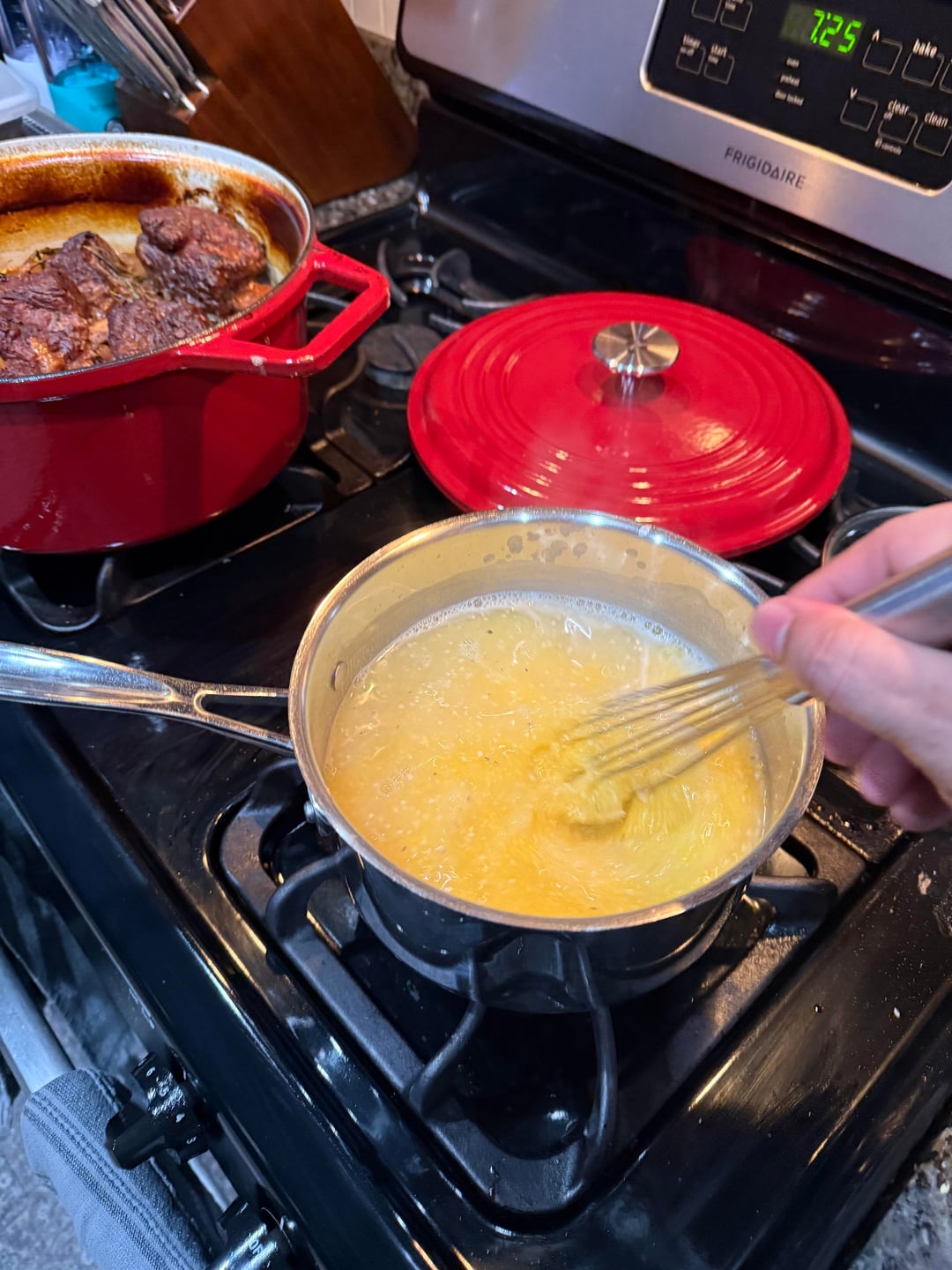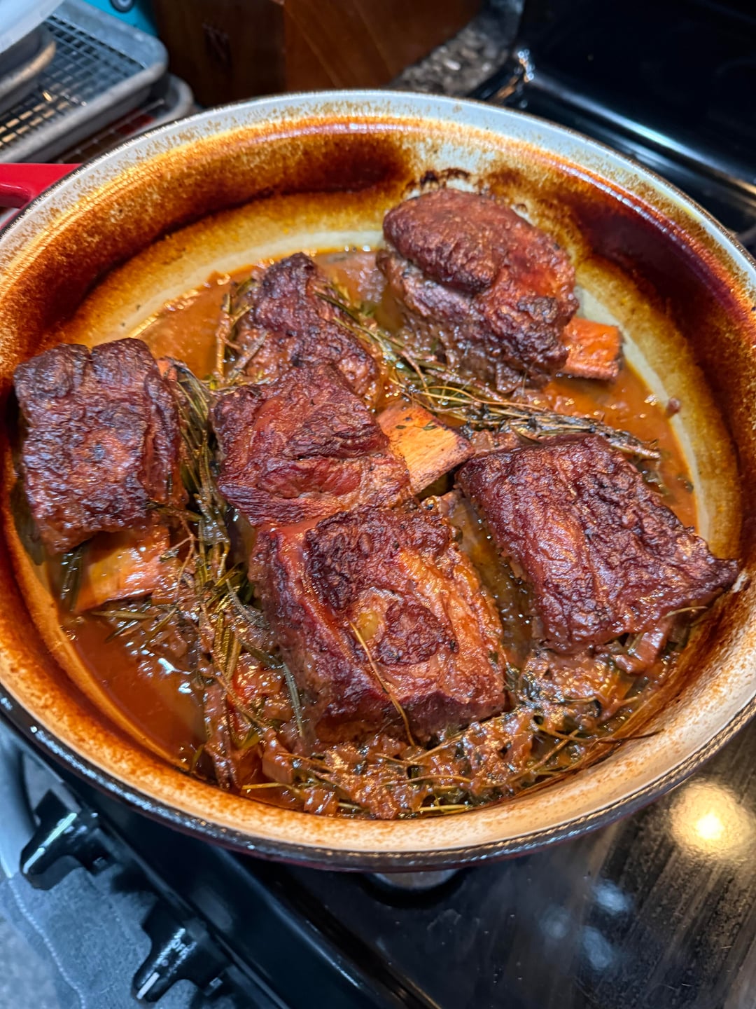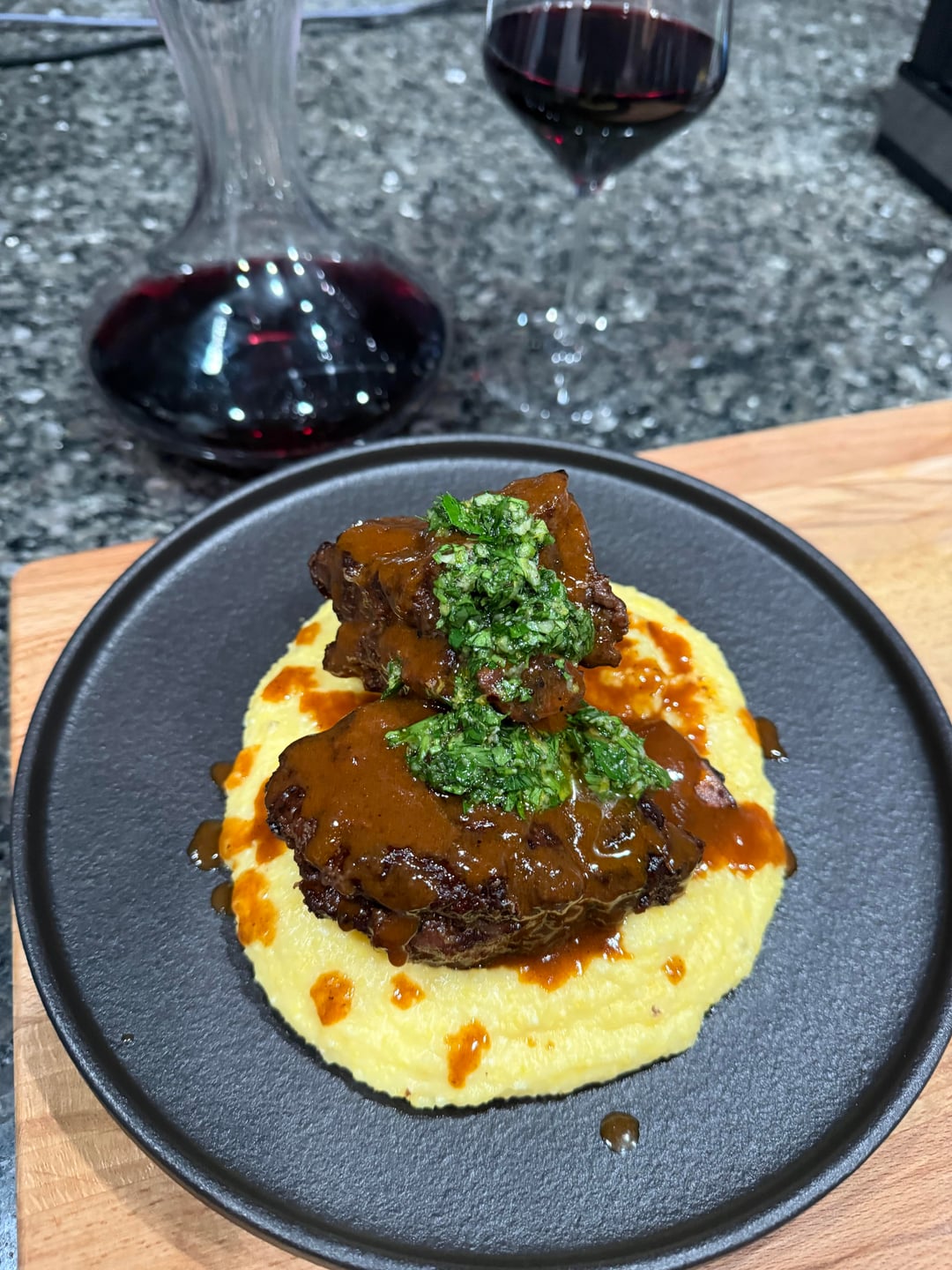 Wine Braised Short Ribs over a Cheesy and Creamy Polenta topped with its Strained and Reduced Sauce and Gremolataby guessimcooking 3 Comments Whirlwind_AK 5 days ago Well – How’d it taste? LittleStarClove 5 days ago Slow cooker where? New-Junket5892 5 days ago Looks great.