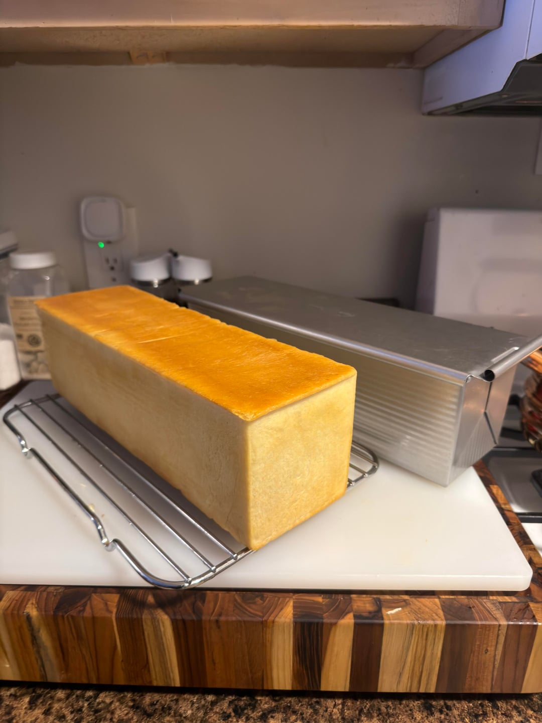 Made a loaf of bread tonight for some French toast in the morning. I love this Pullman pan. Makes a perfect sandwich loaf every time!by Mayo_Bandit85 17 Comments Fresh-Willow-1421 5 days ago That’s a thing of beauty right there. foreverabatman 5 days ago Whoa I opened this at work. Needs a nsfw tag bidoville 5 days ago Drop that recipe. 👏looks great HeatherNo1 5 days ago Truly nothing is more satisfying than sliding that top of the Pullman pan off and seeing that perfect geometry!!! Downtown_Share3802 5 days ago I wondering what kind of yeast you used. Don’t they need a poolish or whatever that word is ? sat781965 5 days ago Lovely! Nice job. Fuzzy_Welcome8348 5 days ago  drgreenair 5 days ago Is there a trick to get the top so flat like that? Mine would bulge up like any bread would IntelligentTangelo31 5 days ago Mmm square! manofmystry 5 days ago Nicely done. MrsClaire07 5 days ago Beautiful! MarkInmanSuperGenius 5 days ago Well done! CharmingBabee02 5 days ago Omg yes 😍 that loaf looks perfect! Electronic-Country63 5 days ago Oh wow it really is perfection… how’d it taste? Looks fabulous. Synlover123 4 days ago Bet it makes great French toast! How long did you leave the slices out to dry so they wouldn’t get soggy when you dipped them in the egg mixture? monsterlander 4 days ago I absolutely LOVE my pullman DropDead_Slayer 4 days ago No notes.