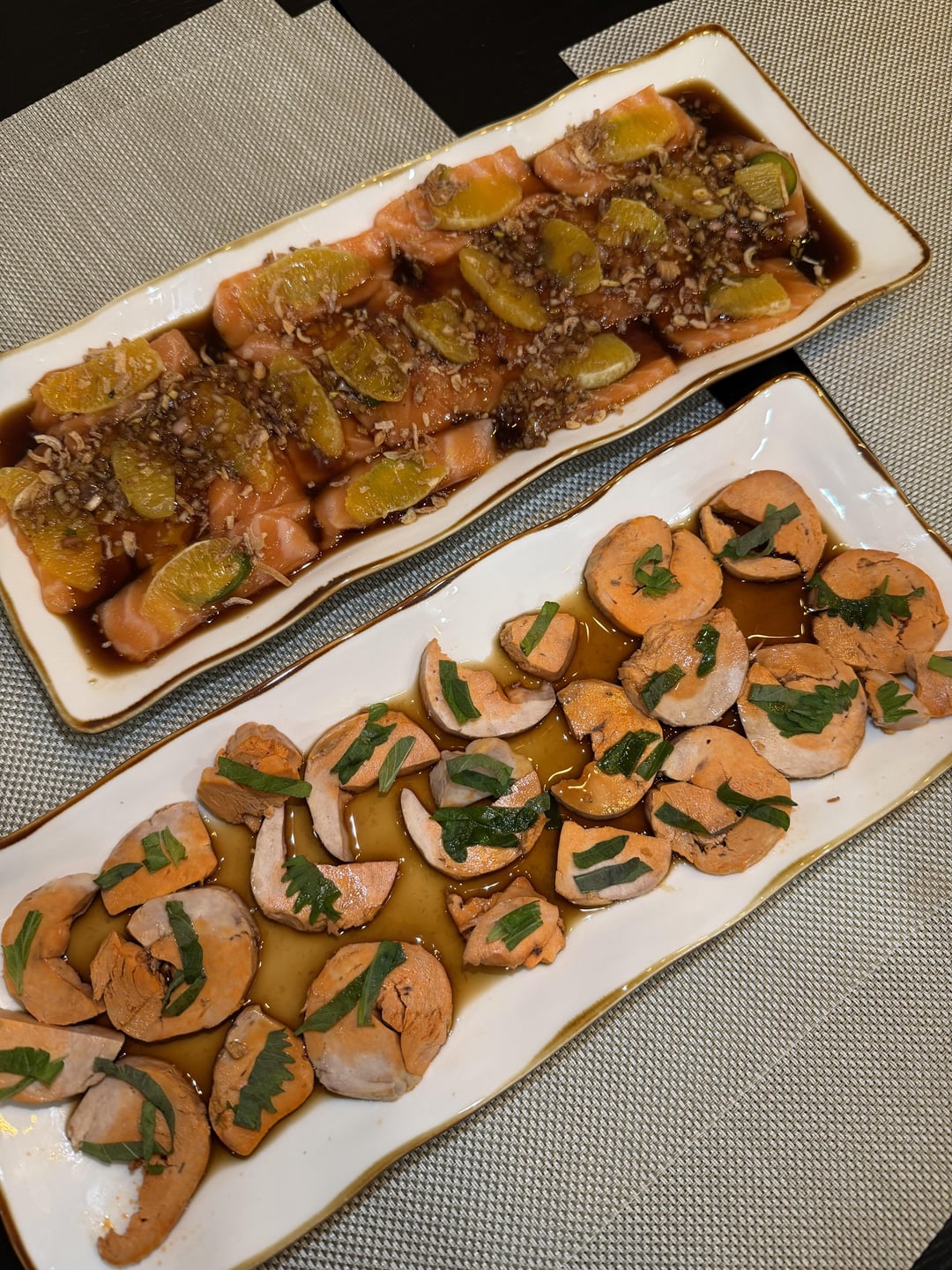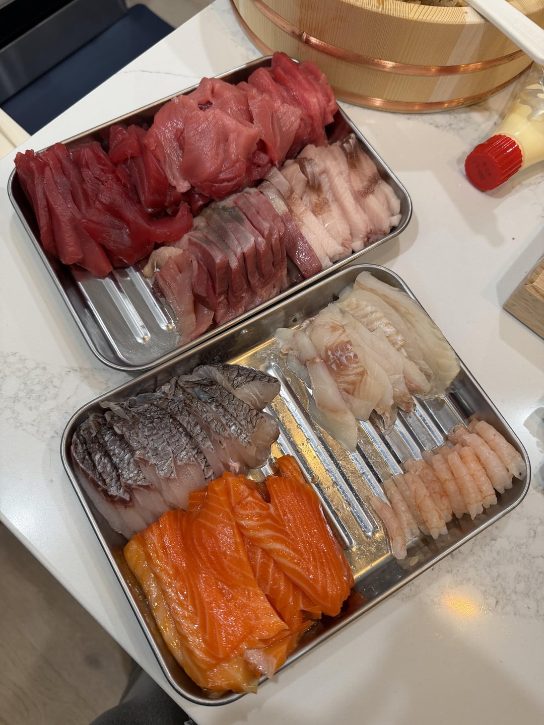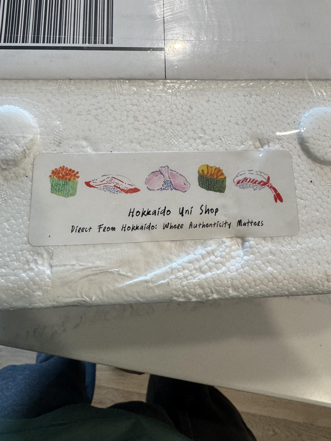 King Salmon, Hamachi, Hirame, and Amaebi frozen from Hokkaido Uni Shop.