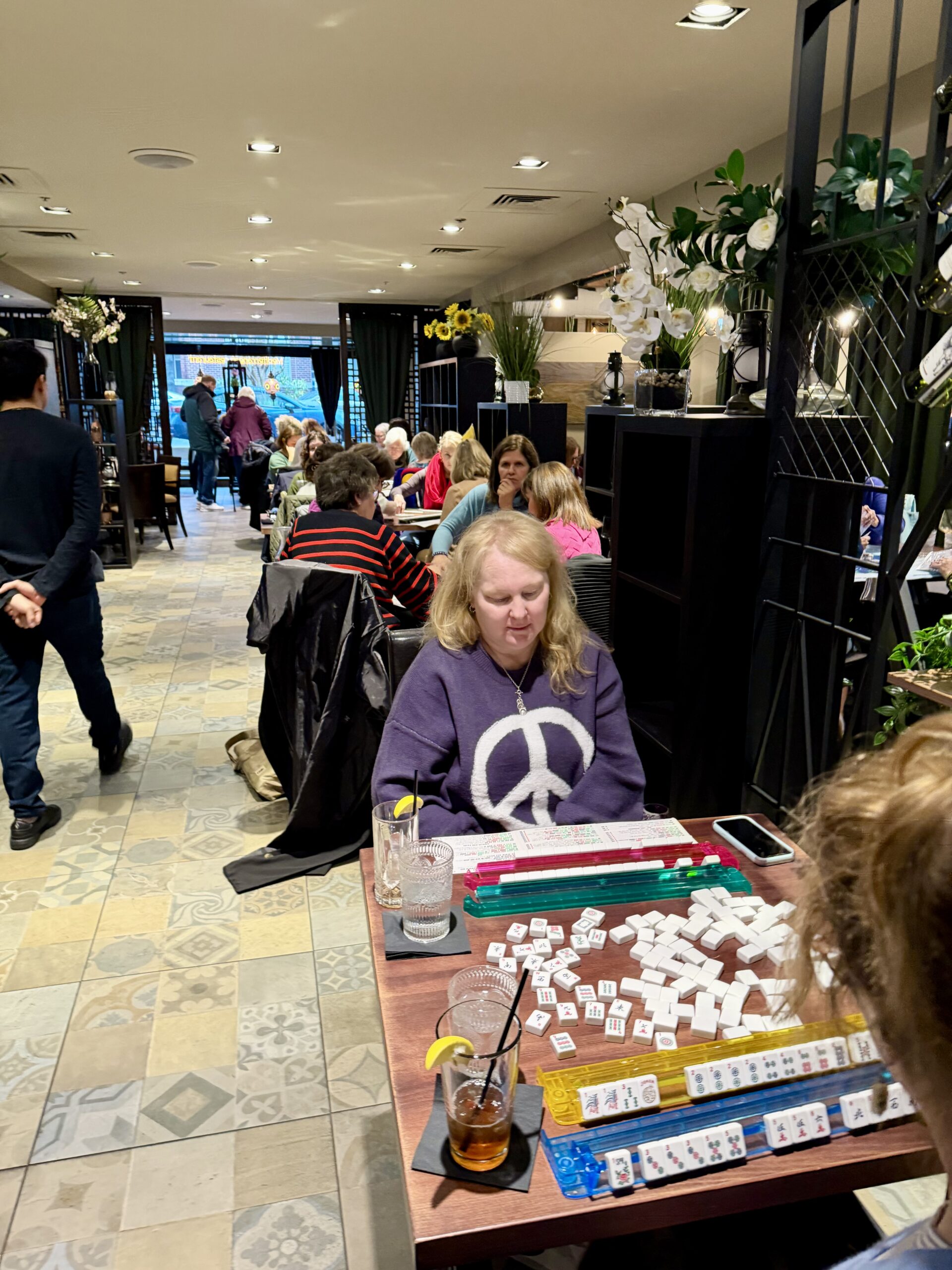 Bedecked in a profusion of generous, multihued scarves, here and there a shout of bright red, green, or purple sweater, the requisite assemblage of turtlenecks, sweatshirts and hoodies, and the inevitable array of green quilted-coats, blue jeans and pantsuits, a dazzle of nearly 50 women and one very smart or very lucky man gathered on a January afternoon for an exquisite brunch of Mediterranean food and wine, followed by the monthly Mahjong Party at Valletta Port.