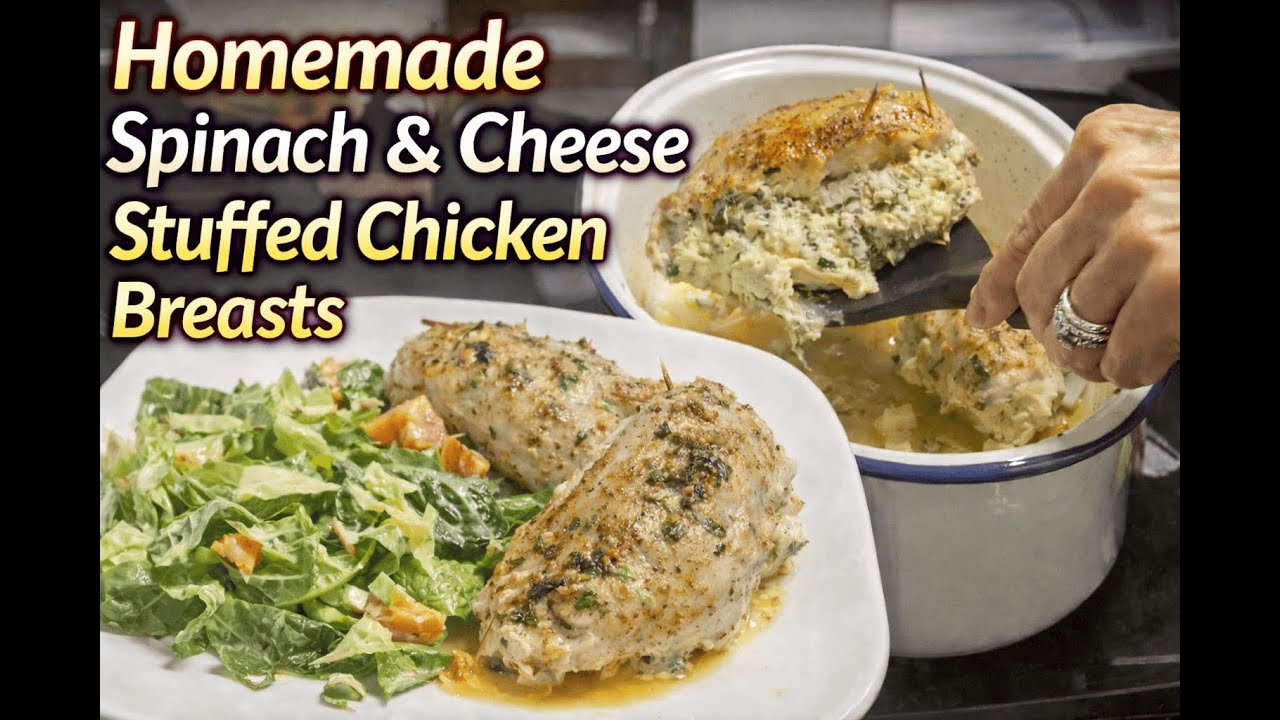 Homemade creamy spinach and cheese stuffed chicken breasts made start-to-finish at home using simple ingredients. This skillet-to-oven chicken recipe is rich, comforting, and easy enough for a weeknight, yet impressive enough for guests.