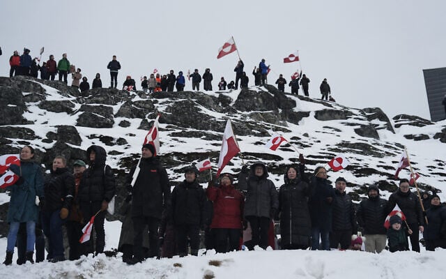 People wave Greenlandic flags as they take part in a demonstration against the US President’s plans to take Greenland, on January 17, 2026, in Nuuk, Greenland (Alessandro RAMPAZZO / AFP)