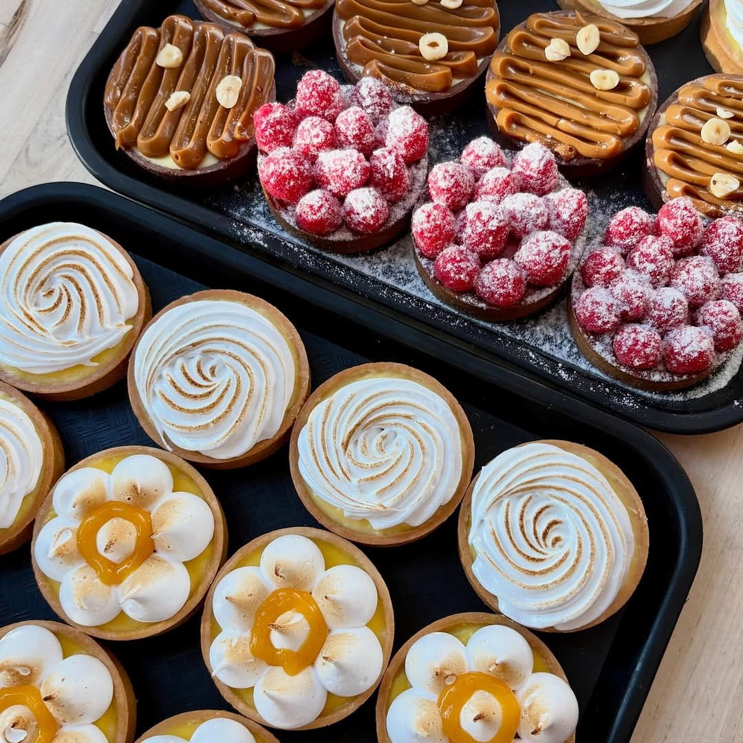 In addition to cream puffs, Barachou’s menu has expanded over the years to include French tartelettes — such as lemon meringue, raspberry almond, pear almond, and seasonal varieties — along with viennoiseries, including croissants, pain au chocolat, almond croissants, cinnamon rolls, cookies, cakes, and savory breads.