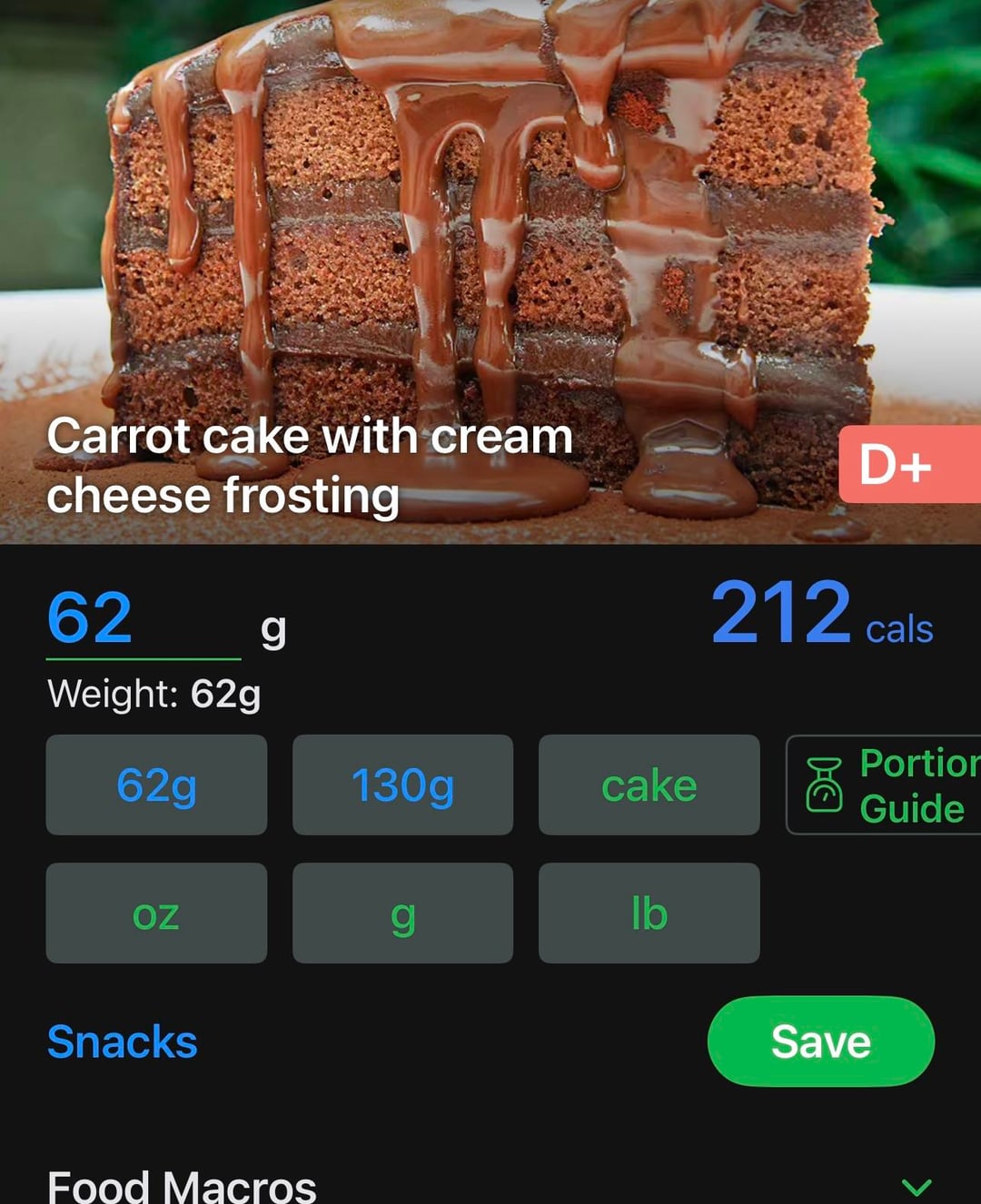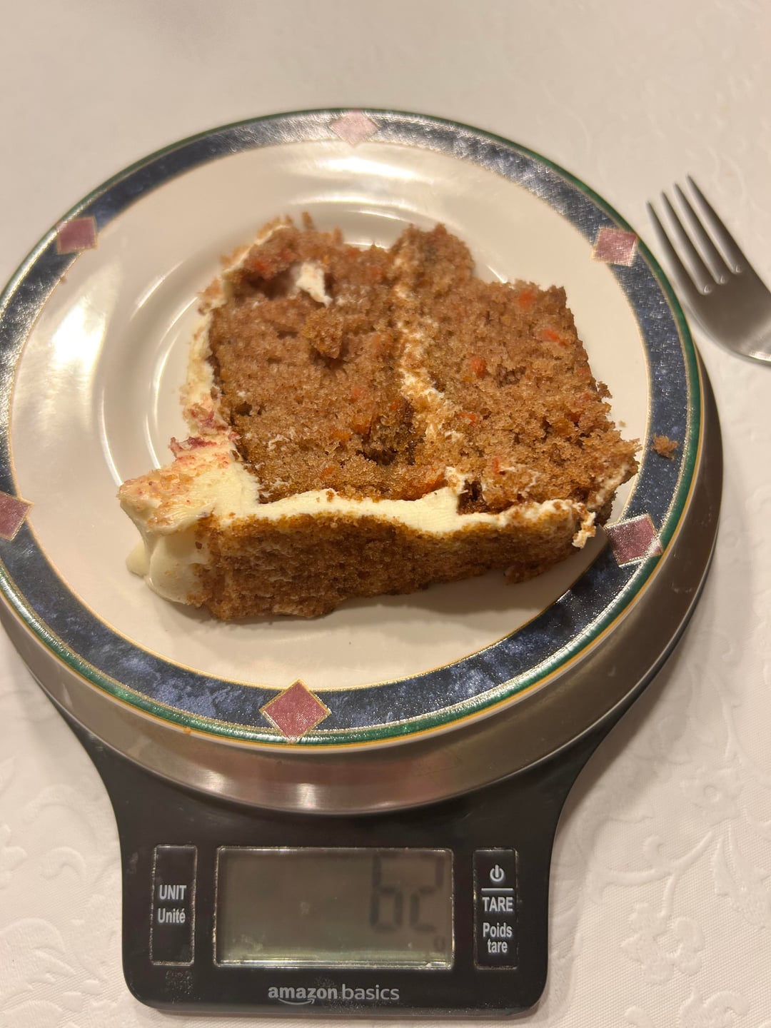 It’s insane how a thin slice of carrot cake is 212 caloriess