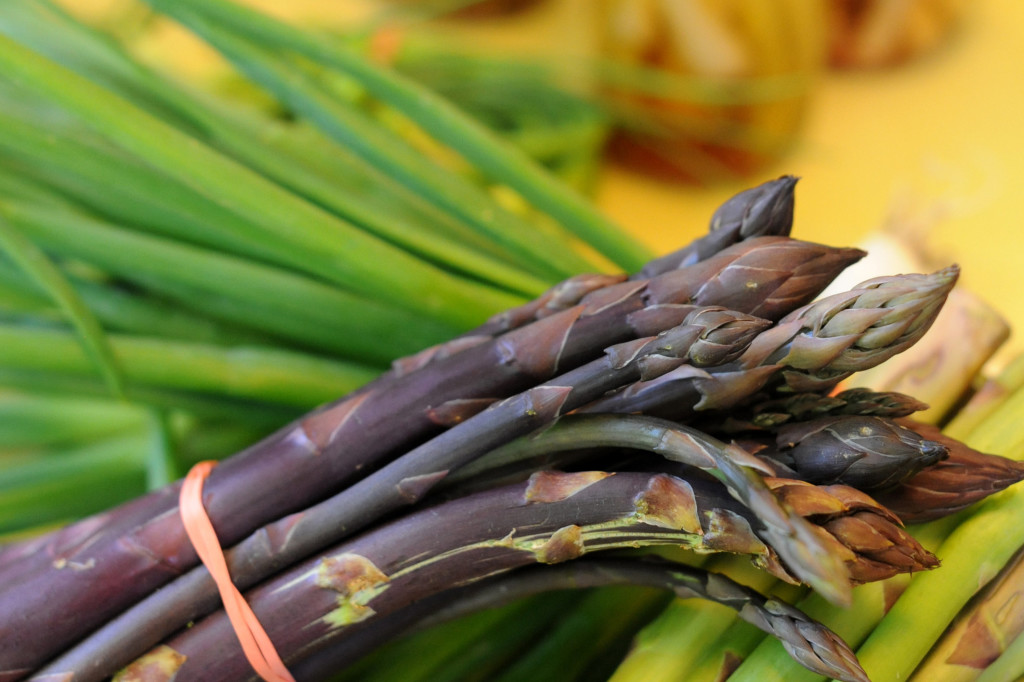 - Pour about 2 inches water into a skillet large enough to hold asparagus lying down; bring to a boil. In batches, blanch asparagus: place in skillet, bring water back to a boil, and then immediately remove and run under very cold water or dunk in ice water. Set aside to drain.