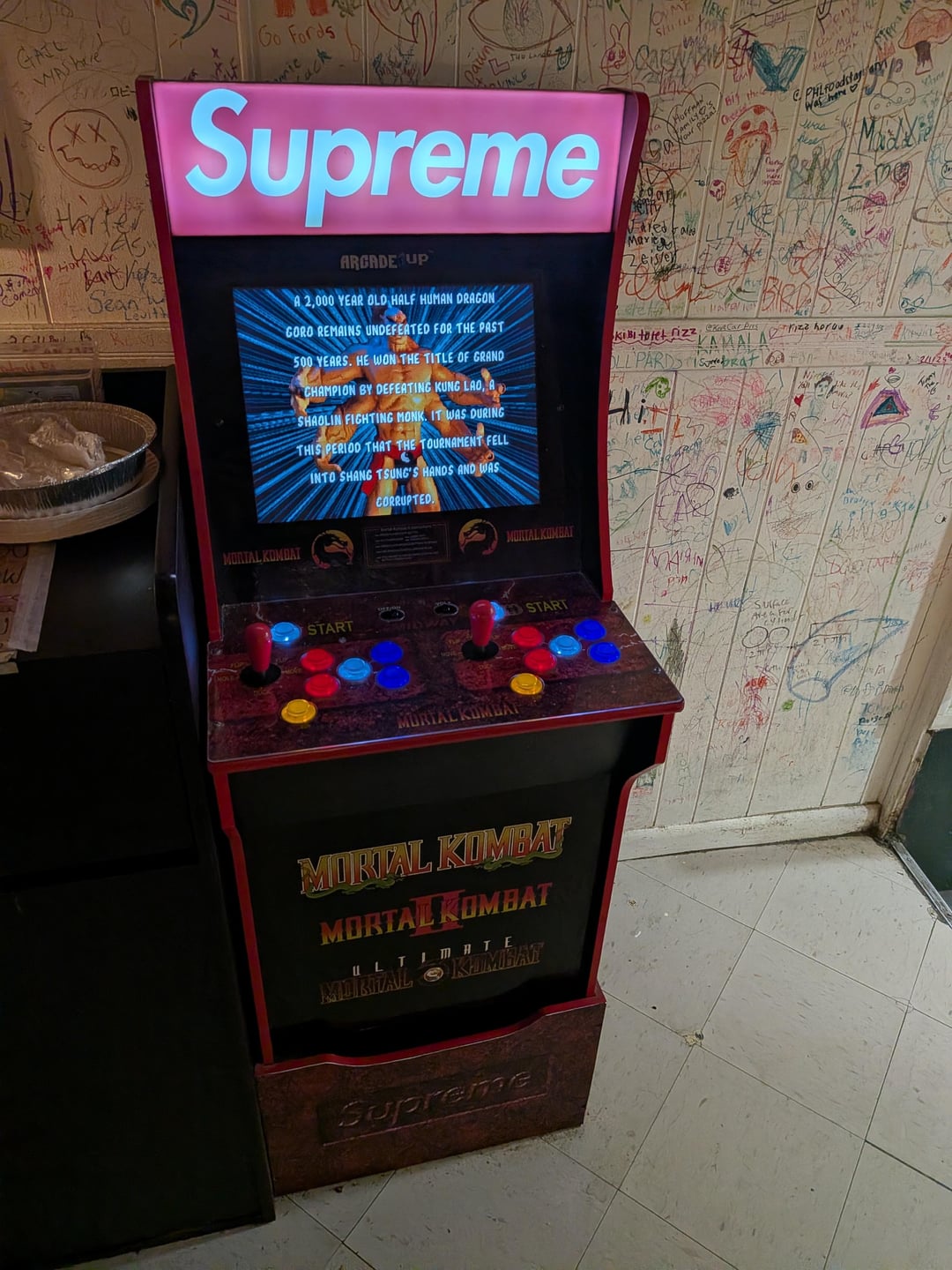 Okay the food looks awesome but I need to know why the arcade machine is Supreme branded