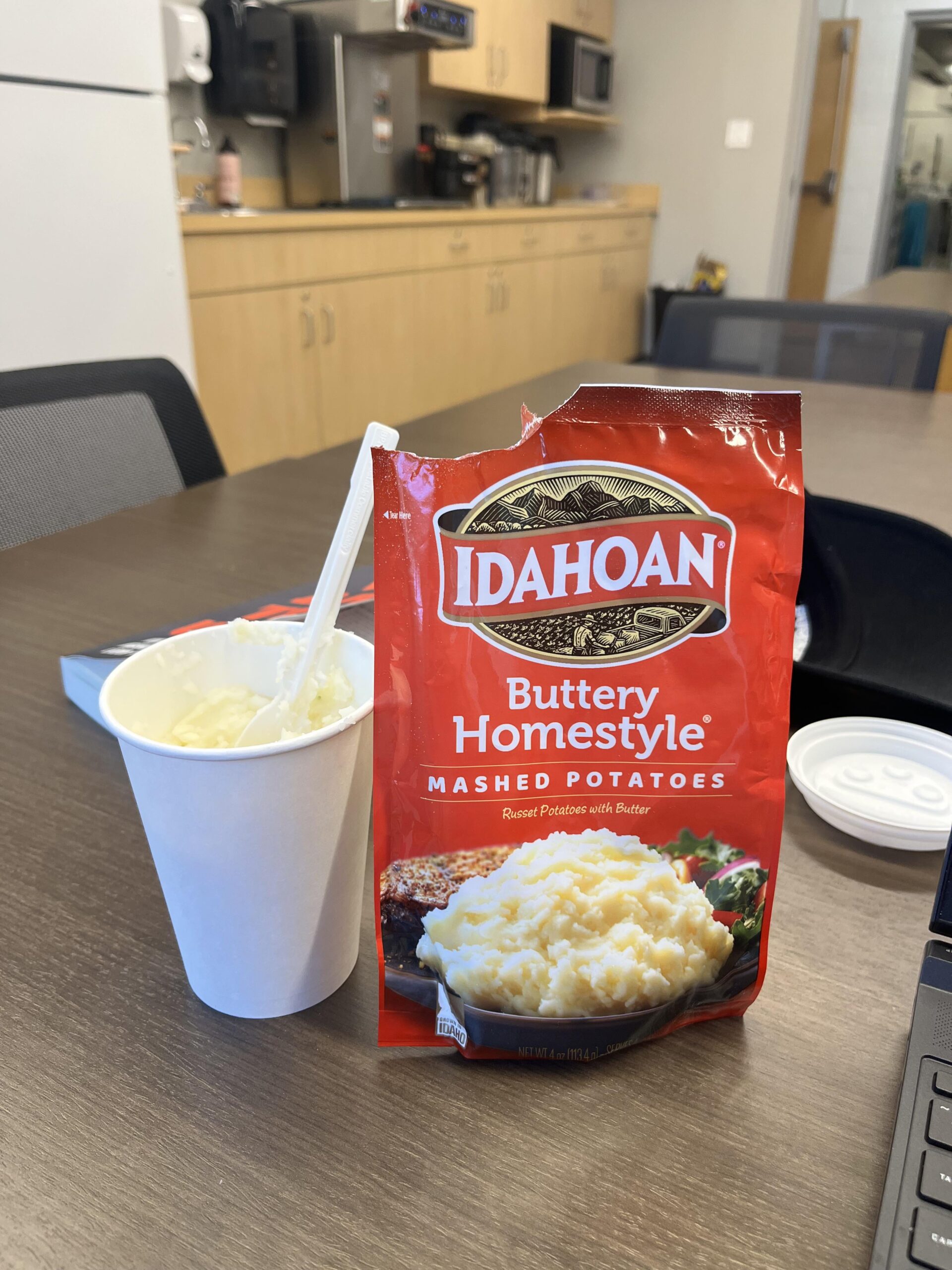 Just a tip if you bake a potato at home and bring and zap it in the microwave and add that to mix potatoes, it’s not bad. Do it fully loaded even.